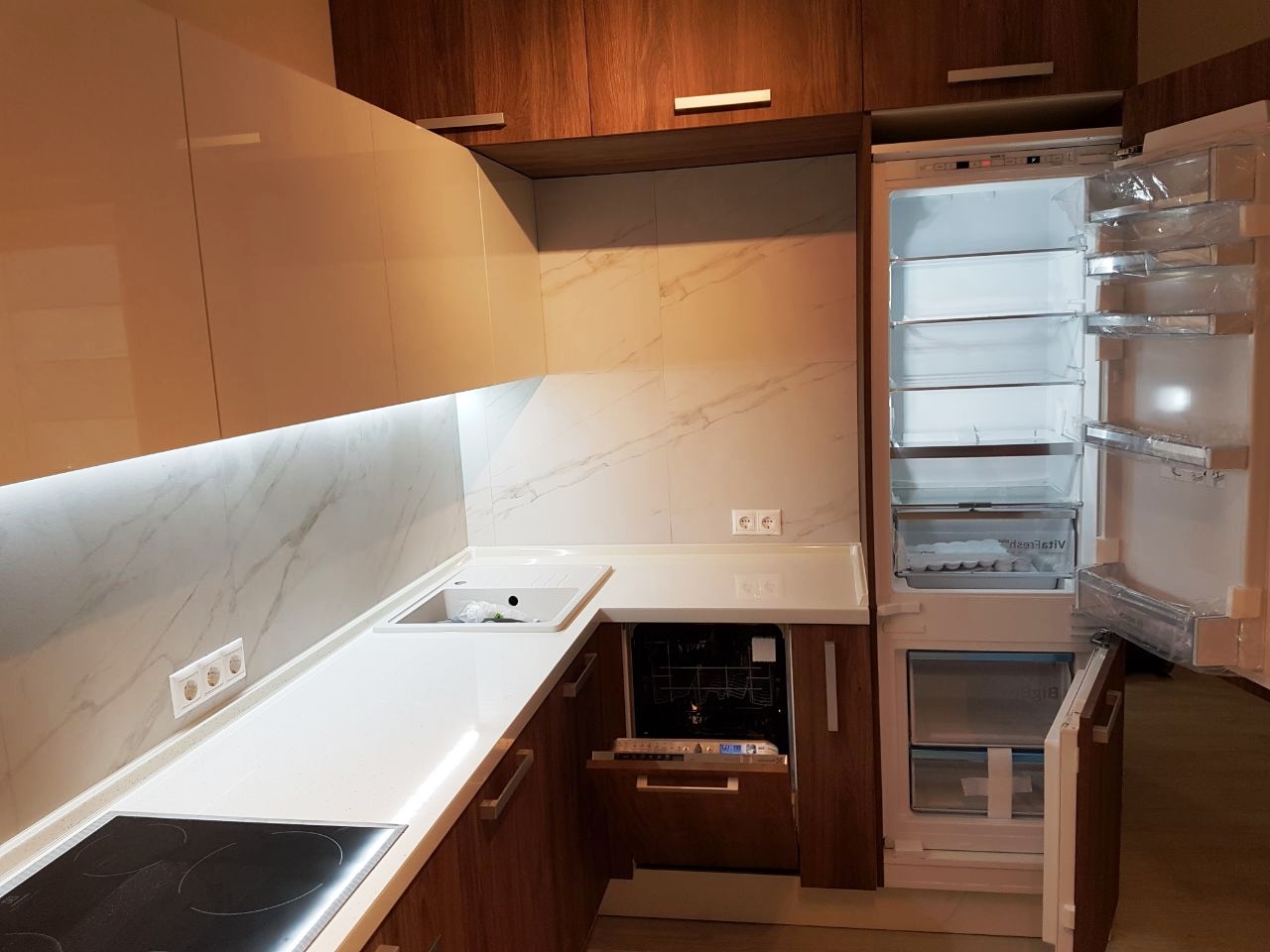 Про офис "Обстановка" услышали по радио. Решили заглянуть туда, так как в поисках современного варианта кухни объездили весь город, не подобрав ничего подходящего - то размер не тот, то цвет и т.д. Результатом посещения офиса стала покупка - именно то, что искали: кухня была подобрана нам по размеру, по внутреннему наполнению, которое позволило вместить всё нужное. И сам внешний вид кухни подошел к нашему основному интерьеру. Изготовление заняло 3 недели, привезли и установили быстро, я очень довольна.