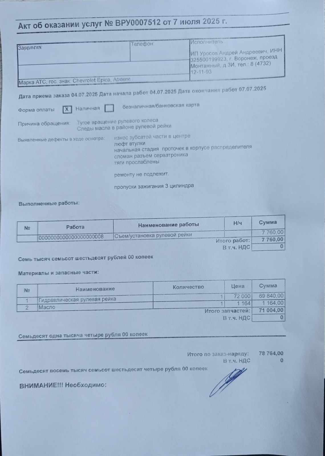 Ужасный сервис! Не смотря на первоначальное вежливое отношение, разводят по полной программе. Сначала назвали одну стоимость, но после разбора машины цена взлетает больше чем в 2 раза. Рулевую рейку приговорили к замене, т. к. на прежней (как сказал мастер) сломан серватроник, но походу они его и отломили. На рейку, которую они поставили, не дали никаких документов, доказывающих, что она новая, хотя изначально обещали. Через месяц я стала замечать капли масла на асфальте, и опять стал тяжелый руль. В другом сервисе посмотрели и сказали, что рейка плохо прикручена, и течёт масло из-под гайки, которая шланг прикручивает. Обещали гарантию 12 мес. Вот даже не хочется к ним ехать и по гарантии. Что-нибудь ещё сломают