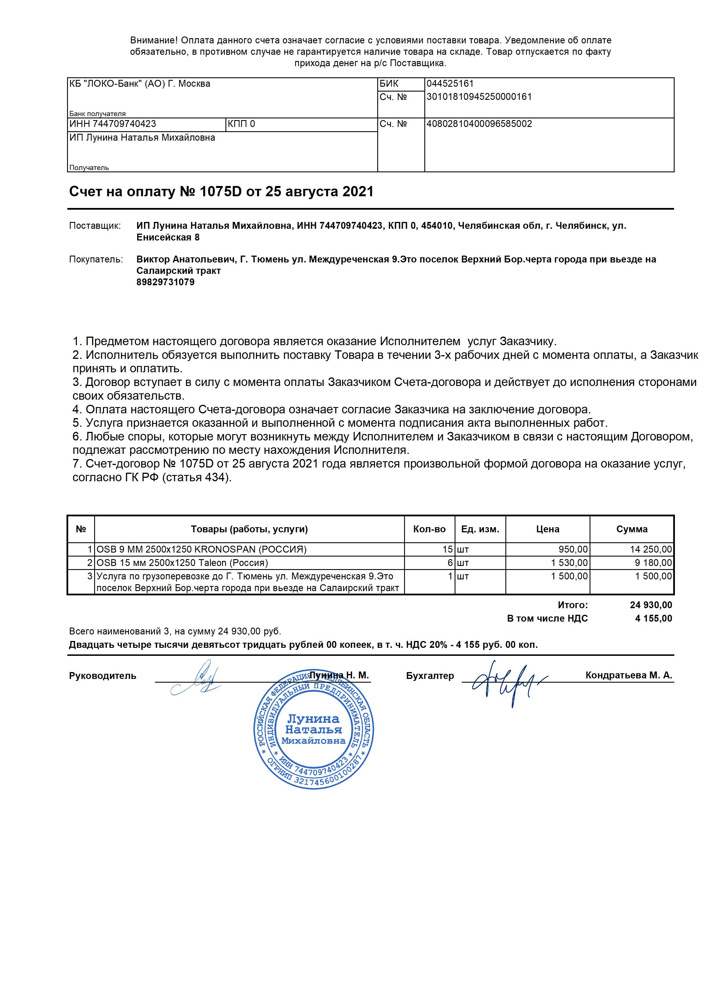 В компании Строй-реал.РФ Челябинск через мессенджер jiva действуют мошенники . Консультант-менеджер Анастасия по просбе присылает счет на оплату товара за подписью гл. бухгалтера , директора и печатью с реквизитами ,предлагает перечисление денег на банковскую карту директора 5490719166098088 Луниной Наталье Михайловне , а после получения денег ни денег ни товара . И нет никакой информации и возможности с кем-то связаться.