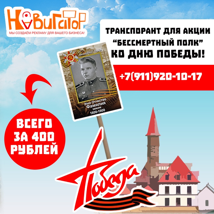 Организация Навигатор из Гатчины может предложить покупателям услуги и товары в 5 направлениях деятельности, в том числе Оперативная полиграфия, Полиграфия и полиграфические услуги, Дизайн рекламы. Фирму можно найти по адресу Карла Маркса, 36а в Гатчине. Связаться с контактным лицом фирмы Навигатор, чтобы получить ответ на Ваш вопрос, вы можете в соц.сети , через сайт реклама-гатчина.рф, с помощью телефонов +7 (812) 9201017, +7 (906) 2707774.