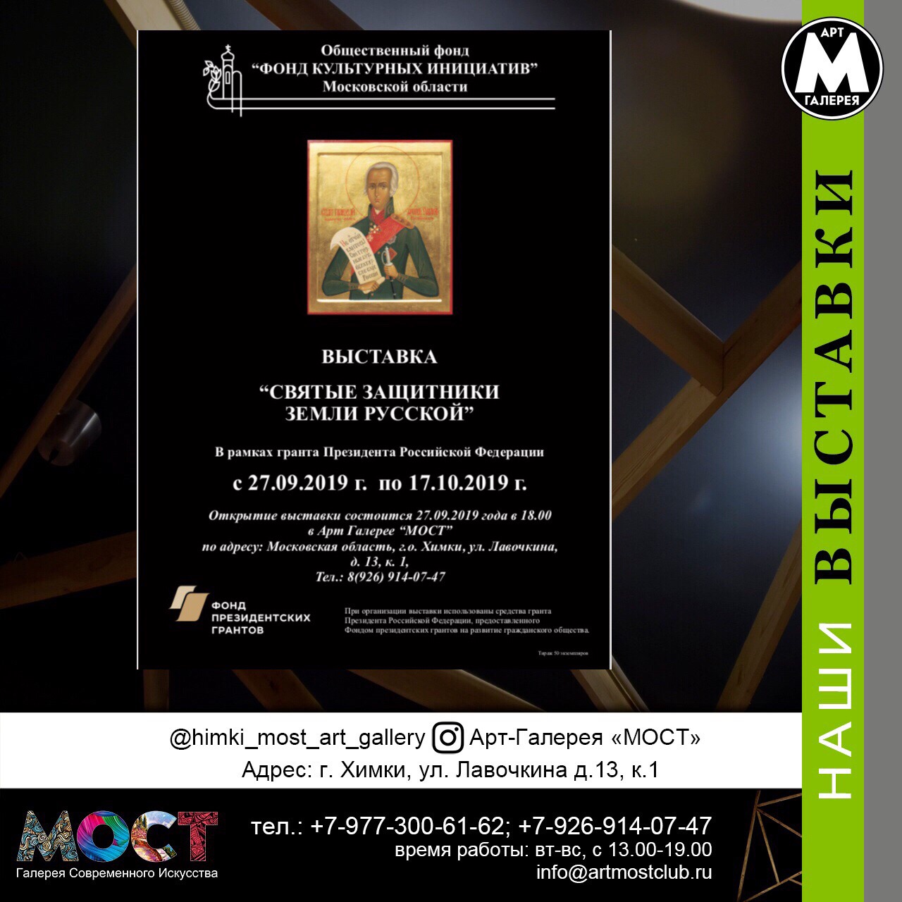 Арт-галерея «МОСТ» открылась 19 сентября 2014 года в городском округе Химки. Основатель галереи - Мария Зайцева, выбрала название "МОСТ", как связующий символ реального мира с миром творчества. "МОСТ" - это посредник между творцоми и зрителем. "МОСТ" - это место встречи для художников. "МОСТ" - это стартовая площадка для новичков. "МОСТ" - это икубатор для талантливых людей.