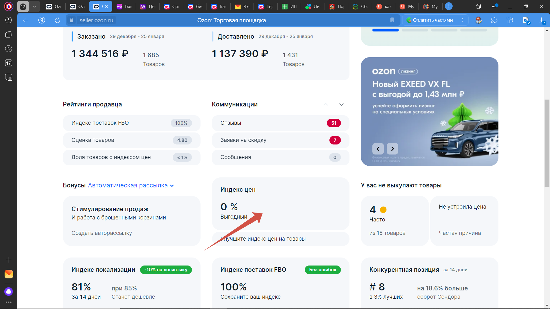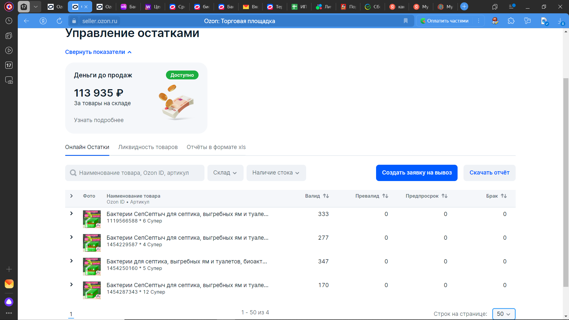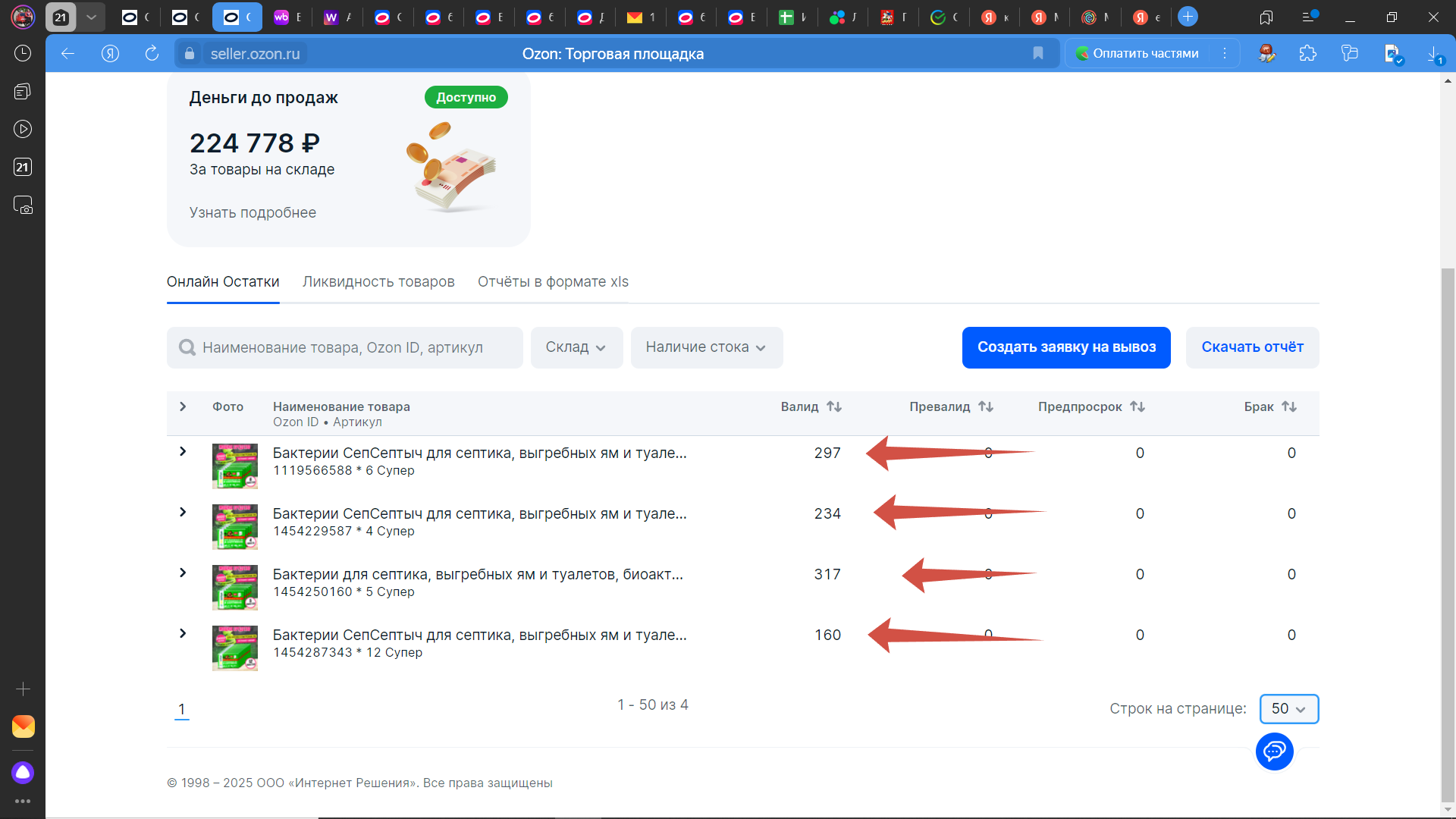 Уважаемые коллеги добрый день. Официальный представитель компании ТМ Сепсептыч - ИП Гургенидзе Лейла Теймуразовна, представлен на вашей площадке: Название компании Официальный представитель ТМ СЕПСЕПТЫЧ Seller API 1294902. Последние три недели мы столкнулись с одной большой ти важной проблемой. В пиковые часы продаж наши товары ( все 4 артикула) отсутствуют на площадке.Написано нет в наличии. На складах в это время товар есть в наличии ,мы его периодически подгружаем ,локализация 80-85% И это ломает всю торговлю,это какое то издевательство над нашим магазином,третью неделю мы к вам обращаемся с одним и тем же вопросом в поддержку,там просто занимаются отписками и проблему не решают. Причем сделав анализ пришли к мнению что карточки наших конкурентов не находятся в подобной ситуации,получается что только мы страдаем,это значит что кто то умышленно делает это,или работает по заданию конкурентов. Просьба помочь разобраться и решить данную проблему.Отправляем несколько скринов,где видно что товар есть на складе а на площадке его нет в наличии.