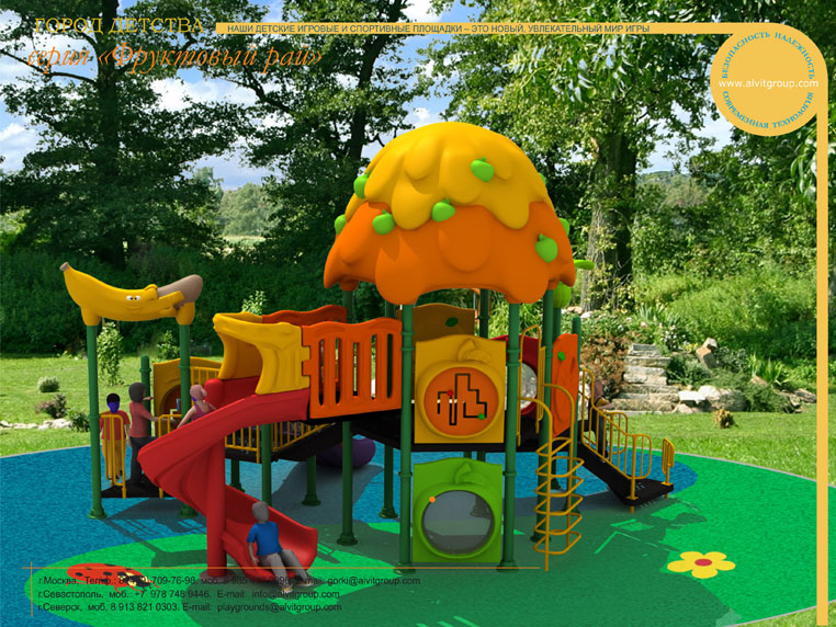 Добрый день! http://www.alvitgroup.com Представляем Вам наш проект "Город детства", по благоустройству дворовых территорий и территорий детских дошкольных учреждений самыми лучшими современными игровыми комплексами. Безопасность, надежность, и современные технологии - это наш выбор. С каталогами и прайсами игровых и спортивных комплексов, дополнительного оборудования и ударопоглощающего покрытия Вы можете ознакомиться или скачать их на нашем сайте по ссылке: http://www.alvitgroup.com/katalog.html С уважением "Город Детства", Отдел маркетинга т/ф 8 499 709 76 98 Сайт: http://www.alvitgroup.com E-mail: gorki@alvitgroup.com