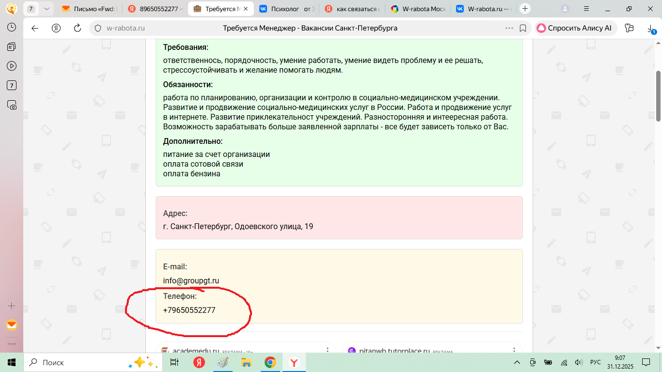 Добрый день. На сайте https://w-rabota.ru размещена вакансия "менеджер" по ссылке https://w-rabota.ru/spb/vid4108596 Однако, данная информация устарела, а на указанном сайте нет возможности внести изменения. Прошу Вас сообщить, как вносить изменения в данную вакансию? Что нужно изменить: изменился телефон 89650552277 на 8(812)980-81-62 - прошу внести изменения. Скриншот прилагаю
