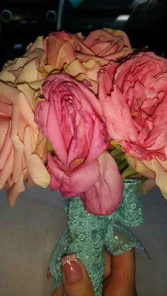 Хочу поделиться своим горьким опытом,заказала тут букет на свадьбу,браслет дружке и бутоньерку жениху и дружку. Сначала я думала какой браслет заказать дружке из искусственных или живых цветов. Флорист этого салона убедила,что лучше все таки их живых,будет красиво и в тон всему.Я согласилась.И когда мне привезли этот браслет,сразу поняла,что с букетом будет точно что-то не то и не ошиблась. Что касается насчет браслета,это была просто большая роза на проволоке. Моему ужасу не было придела,когда я увидела букет.То что я заказывала и что получила,совершенно разные вещи. По дороге в загс я не выдержала и поблагодарила,за такой "шикарный" букет. На что получила ответ: что розу мне показывали я согласилось,что она будет ярче и побольше. При чем как показывали,просто скинули в viber,за день до свадьбы. Ну пусть роза ярче,но совершенно разные букеты,вот что я получила. И так же мне сказали,что вам не нравится,я вам поставила дорогую розу.Если бы еще эта цена соответствовала качеству,я может тогда еще и как-то согласилась. Знаете,главное не цена,а вид. Так же что касается бутоньерки, когда вышли из загса я просто эти 2 бутоньерки и браслет дружки выкинула даже не задумываясь. Я понимаю,что это мелочи,но дорогие невесты согласитесь,что не очень хочется этих мелочей.Надеюсь мой отзыв кому-то поможет) P.S. приложенные фото букета сделанные где-то после того как забрали через 1,5 часа.Бутоньерка жениха сфотографирована в загсе это где-то максимум 2 часа. Ну а первое фото-коллаж- это тот самый букет,который я заказывала,тот самый который я должна был получить в свой самый счастливый день) Выводы надеюсь вы сделаете))