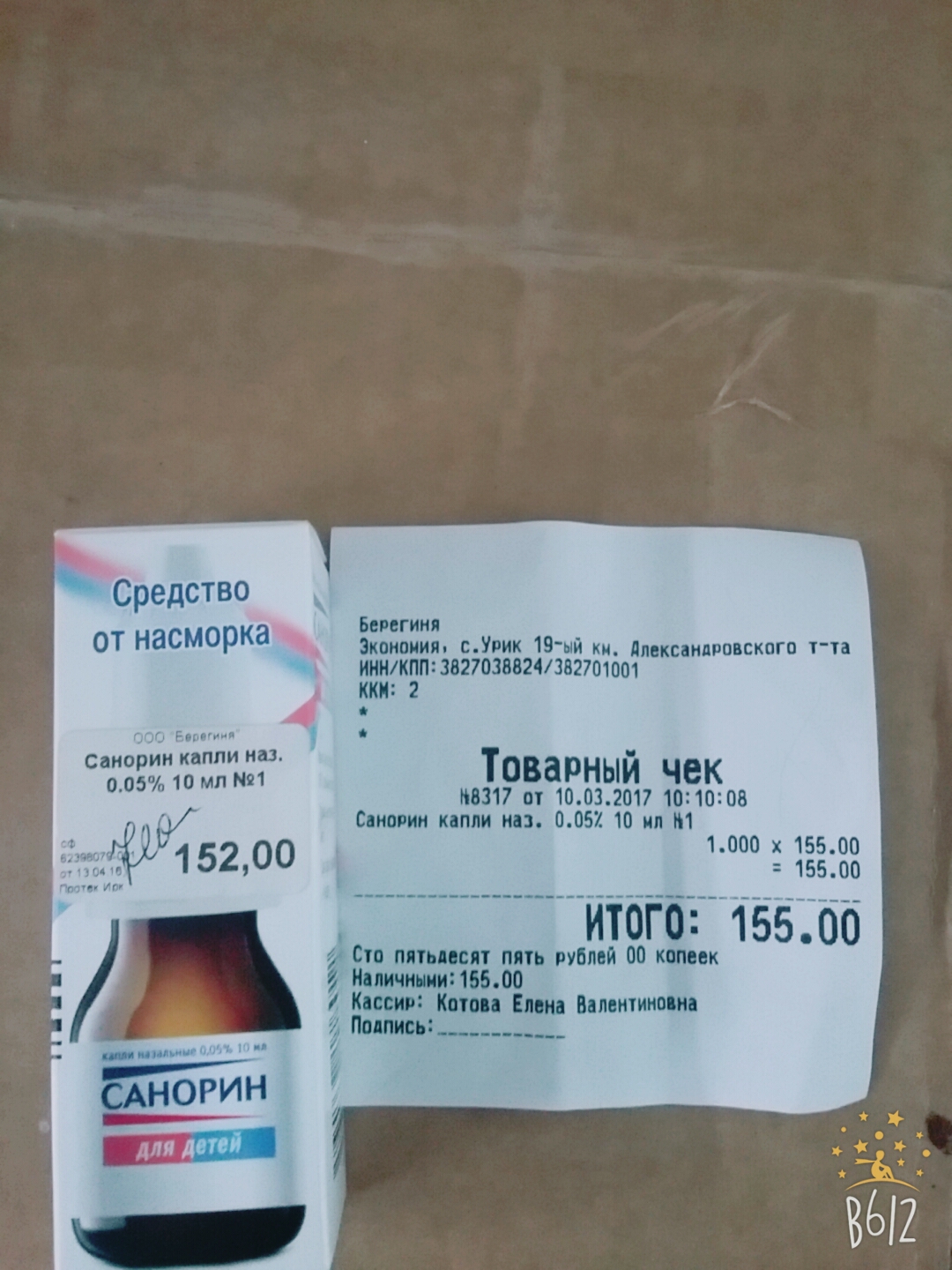 Сегодня в Вашей аптеки преобрела Санорин для детей за 155 руб на центре указано 152 руб, сначало продают по 180 руб на моё замечание , что цена 152 руб делают одолжения и продают по 155 руб . Какая все таки цена?