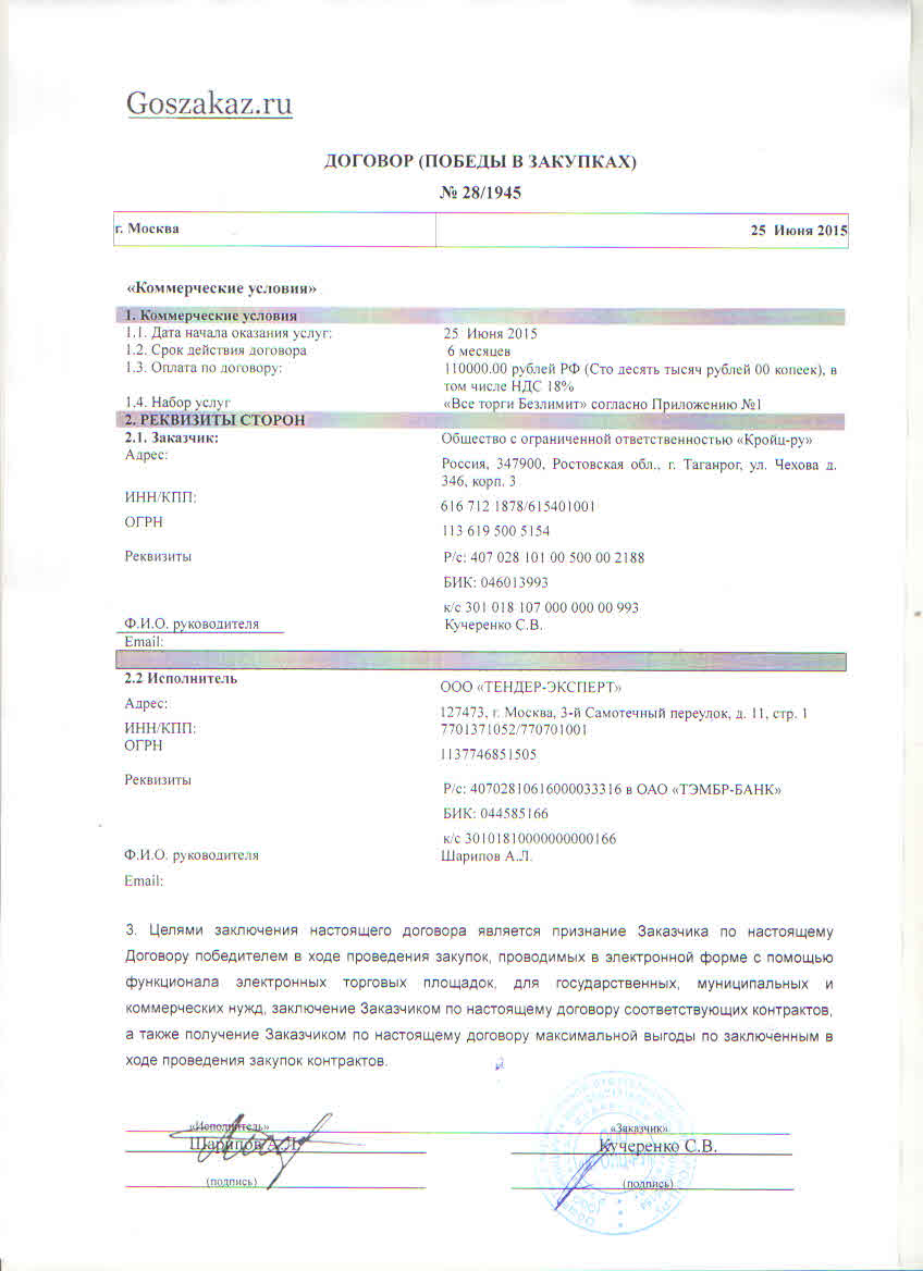 Не работайте с ними ООО «Тендер-Эксперт», они же Трейд.су, они же Закупки.ру, Госзаказ.ру и еще у них много названий. Они рассказывают красиво, что много заказов по вашему профилю, что они предоставляют персонального менеджера который сопровождает Вашу компанию в подборе тендера. Но ничего не делается по факту. Только слова. А вот деньги вы заплатите вперед. Типа под "обеспечение". Только денег потом Вы своих не увидите. Если интересует подробная информация, звоните. +79895215172 Алена ООО "Кройц-ру"