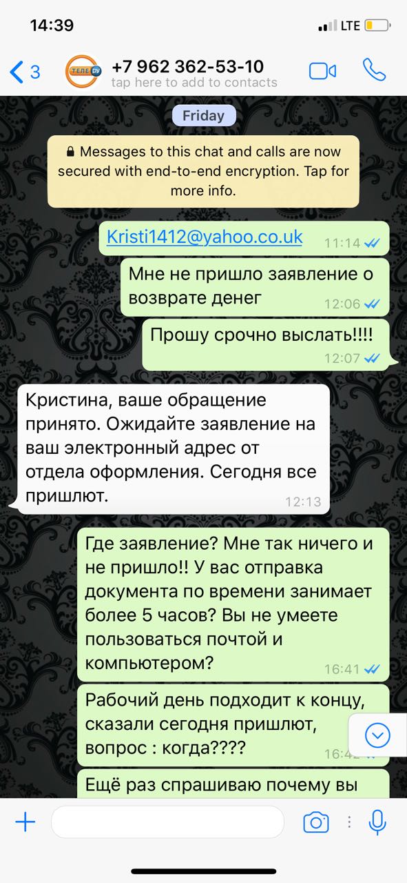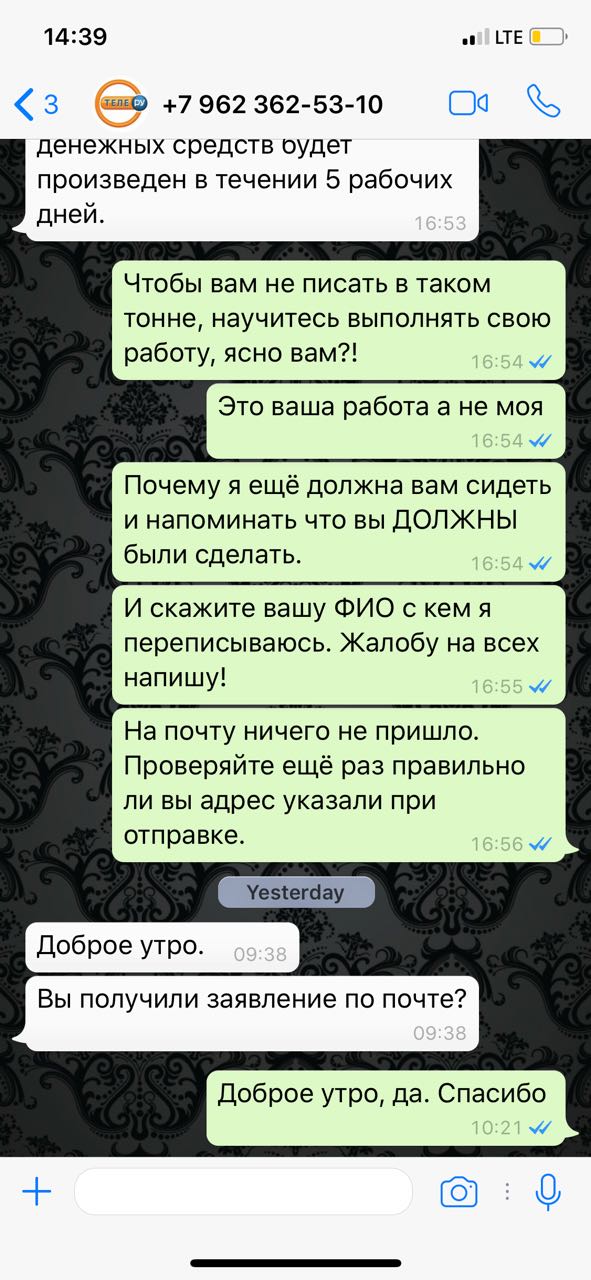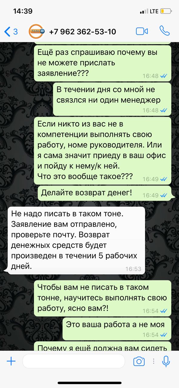 Впервые пишу отрицательный отзыв но то хамское отношение с которым я столкнулся когда хотел подключить интернет с домофоном просто вывело меня из себя. Я уже промолчу про то что те тарифы которые дает теле.ру в разы завышены . Ерунда подумал я, с мыслью что соответственно ихний сервис клиентского обслуживание должен быть на высоте, но к сожалению это оказалось не так а даже наоборот. Дело было так, переехав в новую квартиру мы с моей девушкой решили подключить там интернет и домофон.Расписание компании было достаточно забитым и самое ближайшее врем было на утро рабочего дня. Мастер должен был придти с 9.30 до -10.30. Для этого я даже отпросился с работы на утро отменив все свои встречи и дела, оставшись ждать дома прихода мастера. Так же до прихода мастера я должен был оплатить установку домофона и интерната через сбер банк онлайн что я в принципе и сделал. Время 10.30 мастера так и нет. Звоним в колл-центр, нам говорят мастер уже подходит к дому и будет через 5-10 минут. Время 11.00 мастера так и нет, звоним туда еще раз, девушка отвечает что мастер будет с минуты на минуту и мол перенести мы вас на удобное вам время не можем потому что у нас все забито и что нам все ровно подключитесь вы у нас или нет, у нас и так достаточно клиентов и ваши деньги все ровно уже у нас. Время 12 часов но мастера так и нет. Не став дожидаться мастера я уехал на работу, и что самое удивительное до двух часов дня мне так и ни кто и не позвонил. После чего я решил им набрать сам и запросить возврат денег и тут я столкнулся с таким хамством и отвратительным отношением что мне и во сне такого не снилась! Позвонив им и запросив возврат денег, они сказали что для возврата денег я должен написать им заявление. Я дал свой имейл с надеждой на то что они мне сейчас вышлют заявление, я заполню его, отправлю им его обратно, они вернут мне деньги и я забуду эту компанию как страшный сон. НО НЕТ, все оказалось не так просто. Заявление мне так никто и не прислал. Написав им уже на вотсапп за 10минут до ихнего закрытия с просьбой все таки выслать мне это заявление, оказалось что я с ними общаюсь “не в том тоне” а то что я потратил пол дня чтобы дождаться ихнего мастера который так и не пришел и еще пол дня что бы получить гребенное заявление это совершенно нормально. Пустяки подумал я, сейчас заполню заявления и все. НО, отправив им заявление я узнал что место того что бы заключить договор со мной они заключили договор с собственником квартиры которая вообще не в курсе о существование ихней компании и что бы мне вернуть деньги, заявление должна написать он а не я. В общем больше НУЛЕВОЙ ОЦЕНКИ я поставить не могу. Потому что не возврата денег, не предоставление заявленного сервиса я не получил. Более того за все это время я не получил обратную связь не от одного из ихних менеджеров. Данную компанию я могу только лишь порекомендовать обходить стороной и не более. Пожалейте свое время, нервы и деньги!
