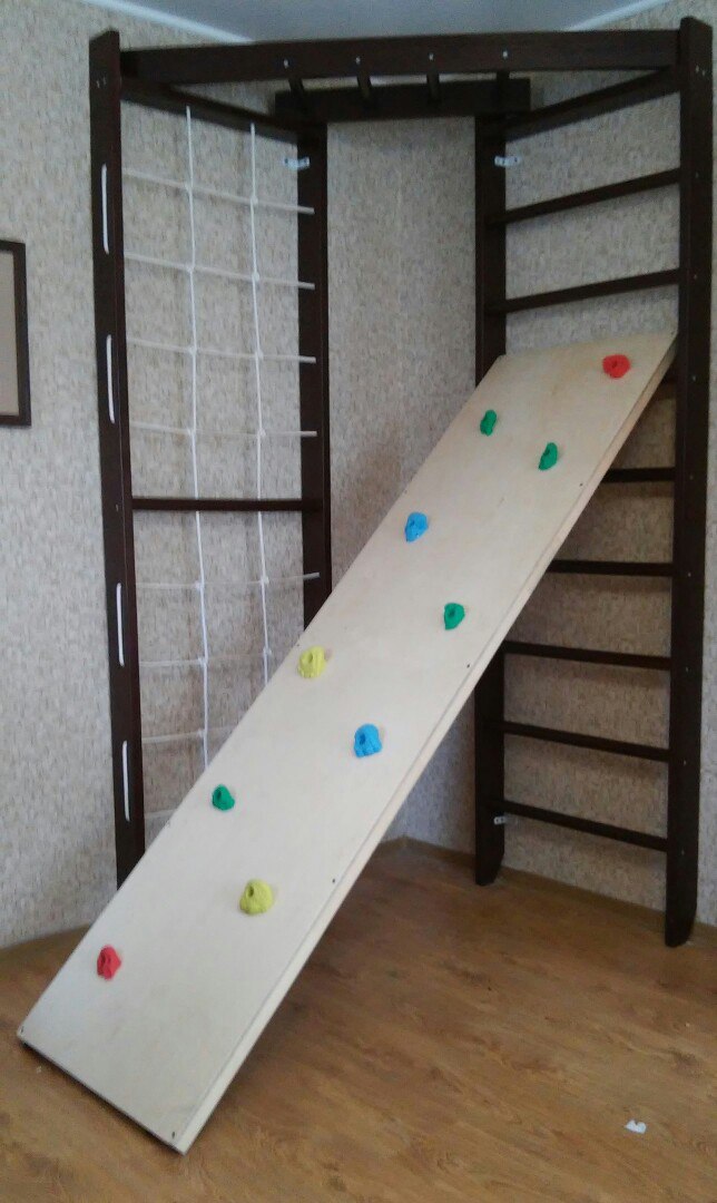 По совету подружки-мамочки, приобрели мы домашний спорткомплекс ДСК Майя для нашего пупсика:) Это чудо вещь! Ребенок в дичайшем восторге!!! Он на нем постоянно тусит. Лазит по лестницам, забирается и слезает, висит на руках и даже учимся подтягиваться!) Везде и все делает сам, научился и забираться и слезать без посторонней помощи. Горка у нас вообще хит! Места занимает мало, но стоит дороговастенько, хотя есть еще более дорогие у других производителей. Главное, ребенку очень нравится и для физ.развития полезно. Мы с мужем в восторге, а мелкий счастлив. Нам 1г и 2 мес, жалею, что раньше не приобрели. С 9 мес уже смело можно использовать. В общем всем советую для ваших обезьянок))))