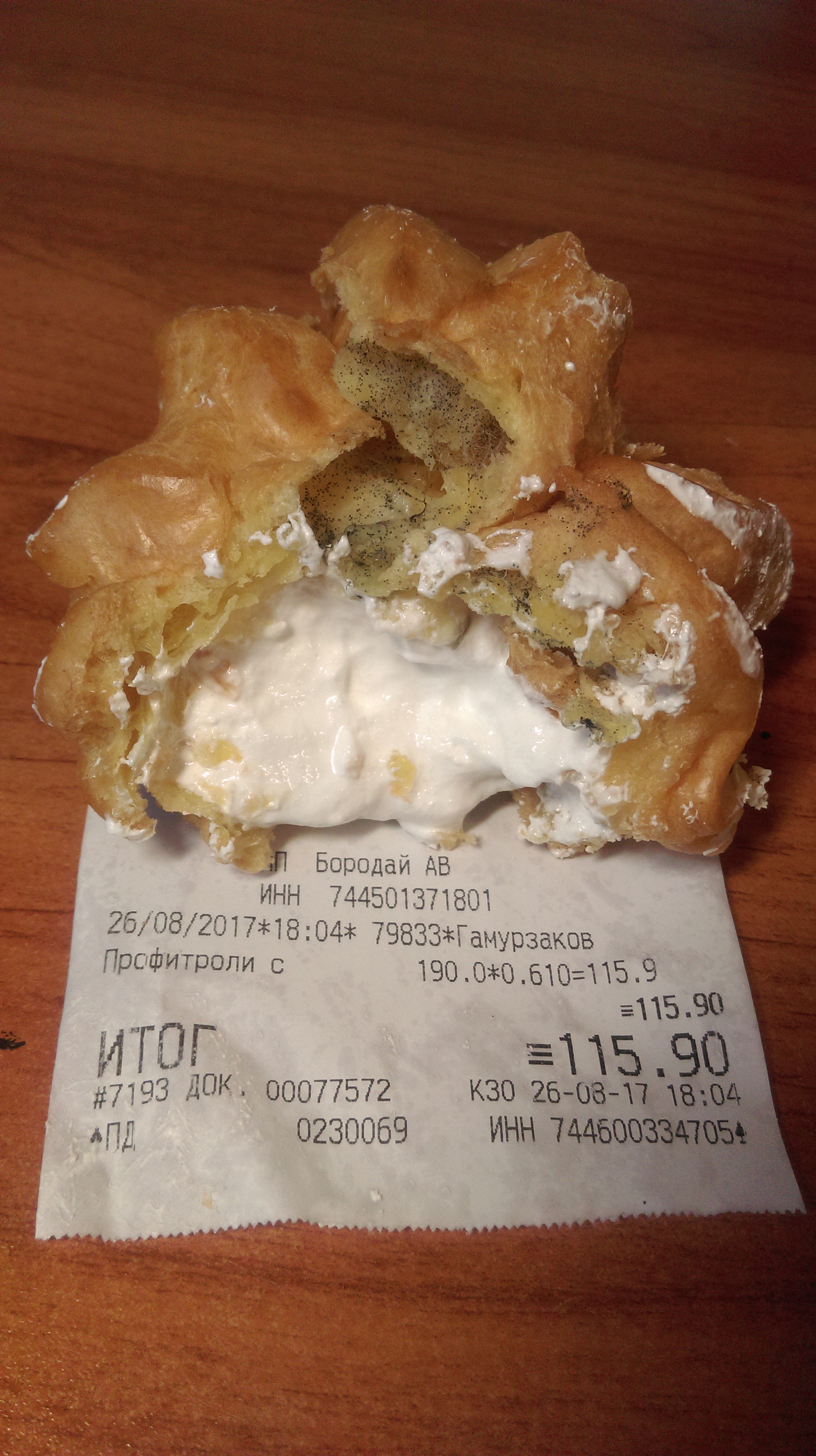 Здравствуйте, хочу написать негативный отзыв ! На центральном рынке (с лева от центрального входа), сегодня купила профитроли "свежайшие" (по уверению продавца). Продавец сказала что это не первый случай у них с профитролями что и вчера была жалоба от покупателей....... и это не их вина а кондитеров!!!!!!! Очень удивлена я, что, получается ответственность за некачественный товар никто не несет....... Это хорошо что первую профитролю взял муж а не ребенок, и увидел ПЛЕСЕНЬ. Это я предполагаю, что профитроли даже не вчерашние. ОЧЕНЬ РАЗОЧАРОВАНА!!!!!! ОЧЕНЬ НАДЕЮСЬ ЧТО БУДУТ ПРИНЯТЫ МЕРЫ.