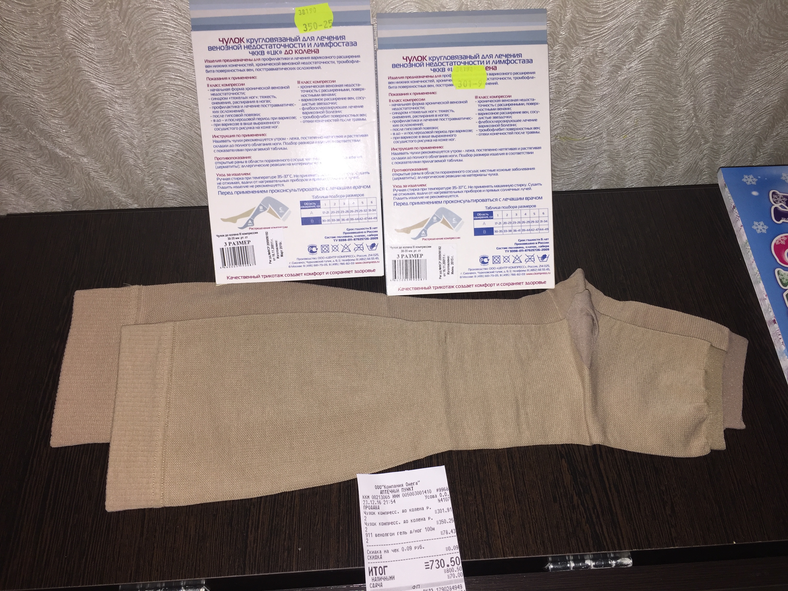 Сегодня вечером покупала компрессионные чулки. 2 штуки, по 1 в коробке. Коробки были одинаковые и компрессия и все параметры, но разная цена. Фармацевт заверила меня, что это разные поставки а гольфы абсолютно одинаковые. Придя домой, я увидела что гольфы разной длины и в стопе один короче другого. По ширине тоже в сложенном состоянии один шире. Возможно, когда кому-то показывали их, то перепутали коробки. С чеком и гольфами в аптеке в категоричной форме мне было сказано,что ничем не могут мне помочь. Я понимаю, что закон и т.п. Но! Значит в другой коробке лежит так же не тот гольф и его продадут человеку у которого так же как и у меня есть проблема с венами и он ему не подойдет. Здесь нужно было просто сравнить их и выявить подмену. Но в этой аптеке работают люди которые могут перепутать не только коробки с трикотажем но и возможно с лекарствами.Я буду надеятся, что директор этой аптеки примет меры. Ситуация крайне неприятная.