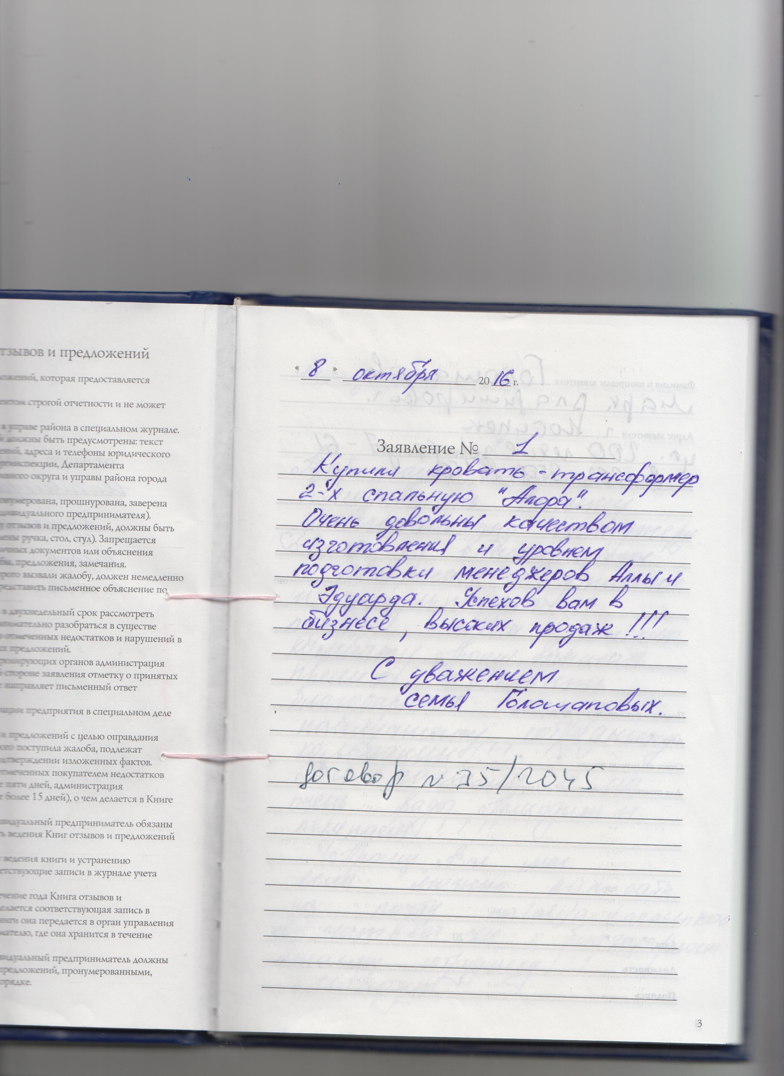 Купили кровать-трансформер 2-х спальную "Алора". Очень довольны качеством изготовления и уровнем подготовки менеджеров Аллы и Эдуарда. Успехов вам в бизнесе, высоких продаж.