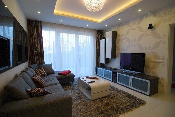 Объем работы в моей квартире был большой, хотелось сделать один раз и потом не возвращаться к этому. В зале сделали двухуровневый потолок, в спальне с фотопечатью, смотрится потрясно. К парням вопросов нет, сделали все качественно.