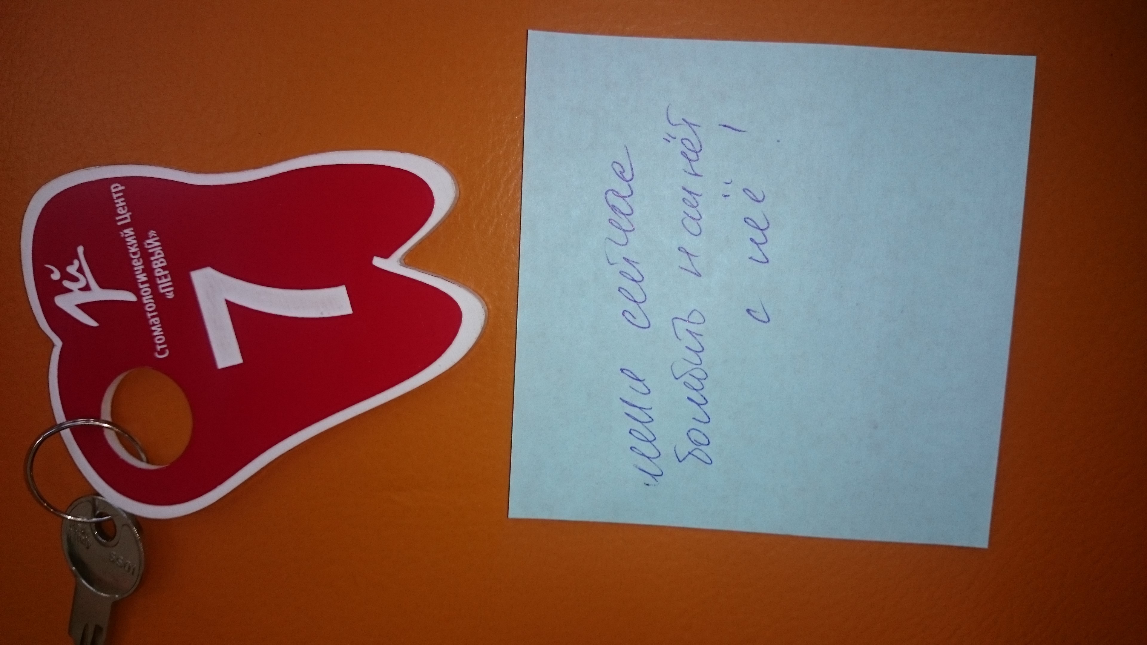 Посетила центр "Первый" 13.09.2015г. Номер чека 0025. После проведения операции по удалению капюшона с зуба мудрости на стикере рекомендации по уходу за зубом было написано следующее: "Меня сейчас бомбить начнет с нее". Врач Исраелян. Совести нет у людей! Оскорбили за спиной, еще и ответили: "Это не о Вас".
