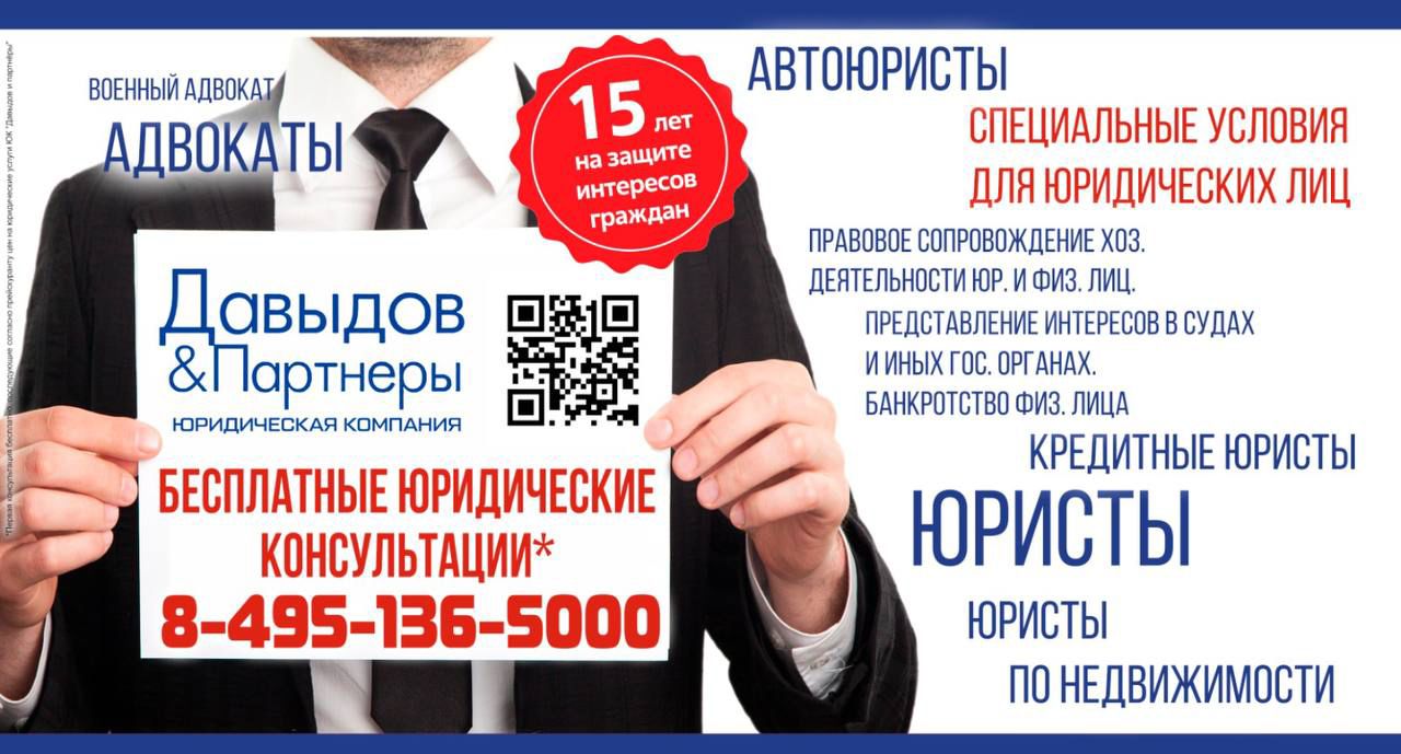 Здравствуйте ! Имею своё ИП .На днях появилась потребность в юридической помощи , обратилась в эту компанию . Cпециалист проконсультировал , грамотно выстроил порядок дальнейших действий. Выражаю благодарность компании Давыдов и партнёры !