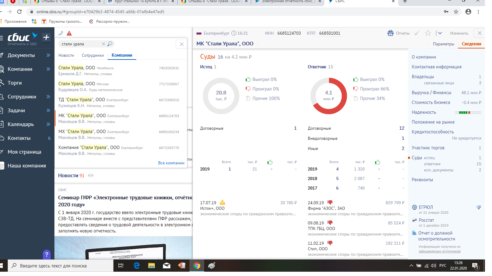 Уважаемые господа. Хочу предостеречь все организации потребляющие металлопрокат прежде чем купить продукцию у ООО "Стали Урала" ИНН 6685124703 обязательно зайдите на сайт sbis online и ознакомьтесь с информацией в разделе суды, чтобы понимать чем на самом деле является ООО Стали Урала и чем занимается В.В. директор компании.