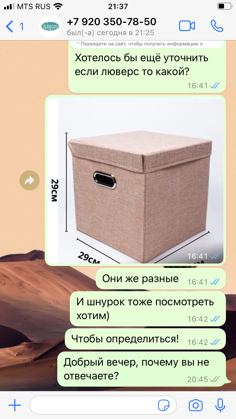 Я уже две недели потратила на то чтобы просто узнать стоимость изготовления и сделать заказ. За это время я выяснила стоимость нанесения логотипа с одной стороны сумки, после того как запросила стоимость изготовления логотипа с 2х сторон работа с этой компанией зашла в тупик. Несколько раз звонила, писала, пообещали сделать макет и стоимость еще во вторник, сейчас четверг и опять тишина. Хотела работать с этой компанией т.к понравилось качество, но не знаю что нужно сделать чтобы на меня обратили внимания и начали нормально работать.