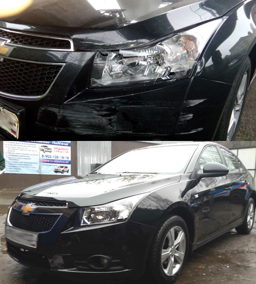 В первый день гололеда (было числа 10-14 ноя) не сбросил вовремя скорость на ЧТК в ВАО и мою машину Шевроле Круз повело (колеса липучки зимние, не шипованные) - как итог разбитая левая фара, поврежденные бампер и капот.. Все это ОЧЕНЬ НЕПРИЯТНО! Знаю лично этот сервис на Щёлковском проезде, 7а, т.к. там продают любые силовые обвесы на внедорожники - бывал там, ну вот еще и кузовной теперь открылся. Делают там нормально, теперь и сам убедился. см. фото. За неделю все сделали и недорого встало. Оценивал ремонт в нескольких автосервисах, так вот они ценник нормальный выкатили, не задранный. Сейчас не выезжаю на дорогу без особой нужды, тем более везде пробки и нервозность!!
