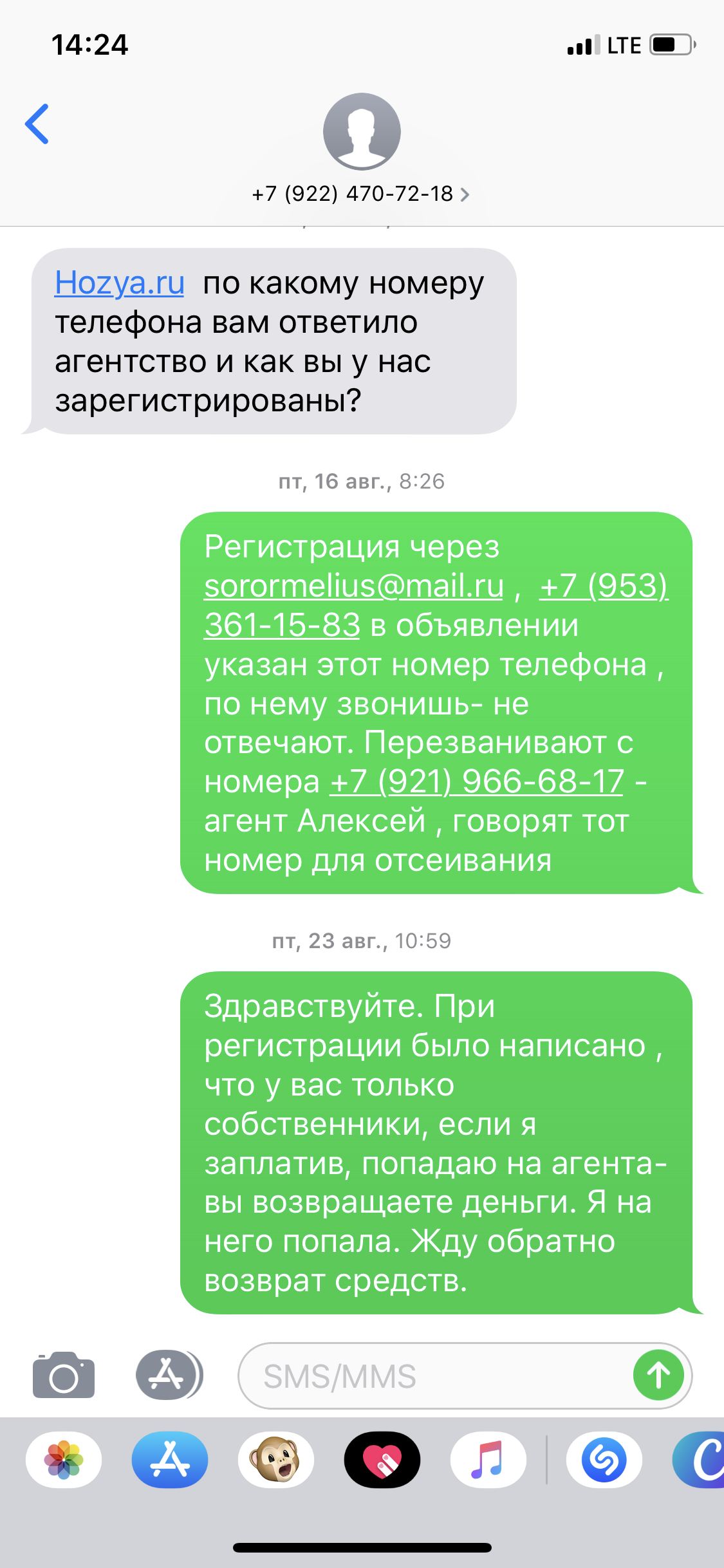 @Валерия, Hozya.ru ваши смс не дошли до нас. Потому что со всеми клиентами мы решаем вопрос до конца. Возврат вам сделали.