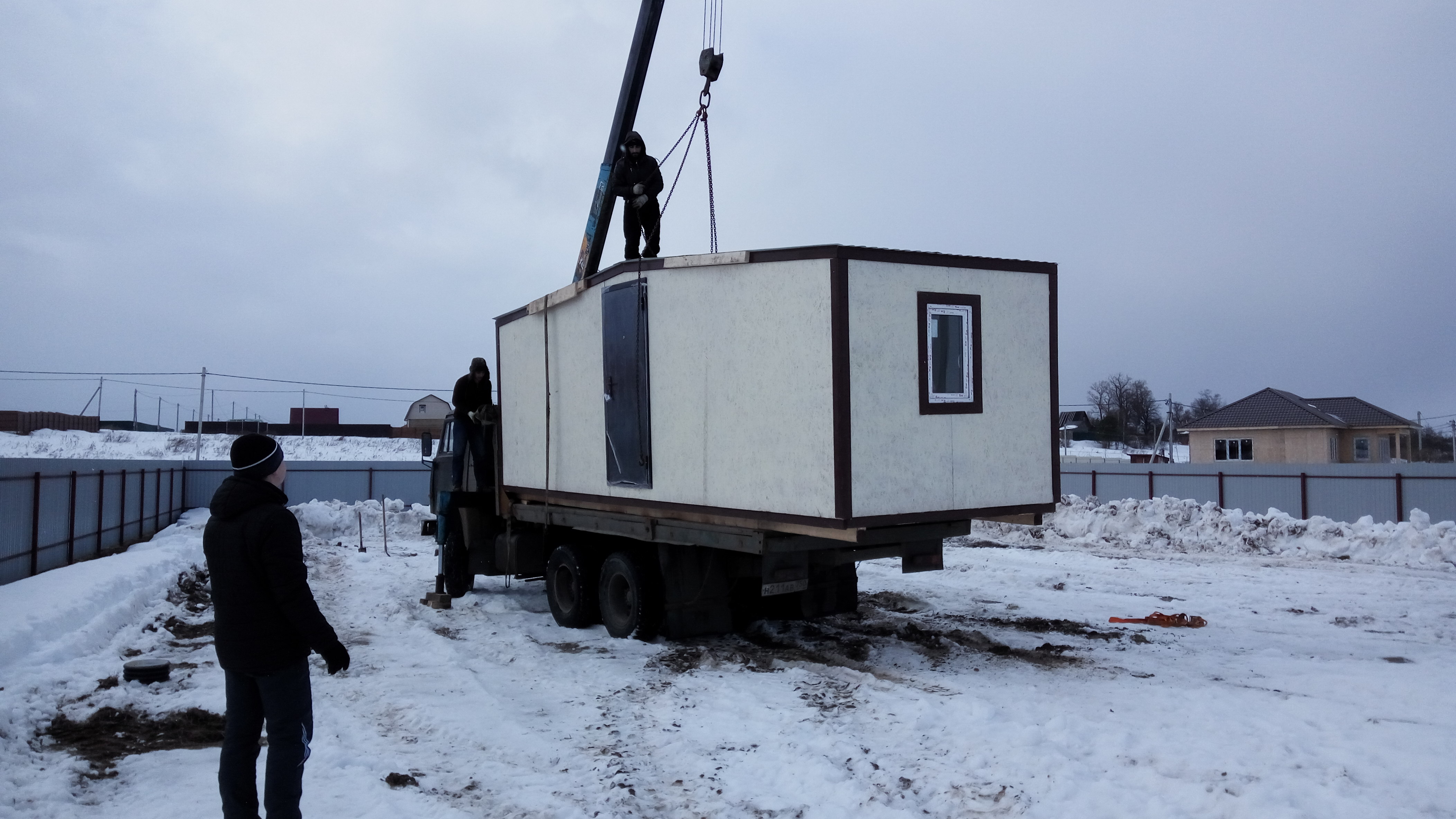 Вчера привезли евробытовку зимнюю, заказывал в «Бытовка Русь». Бытовку делали по моему проекту, всё точь-в-точь, как заказывал (внутри имитация бруса, электрообогреватель, стол и умывальник из дополнительного «фарша», так сказать. Претензий к качеству нет.