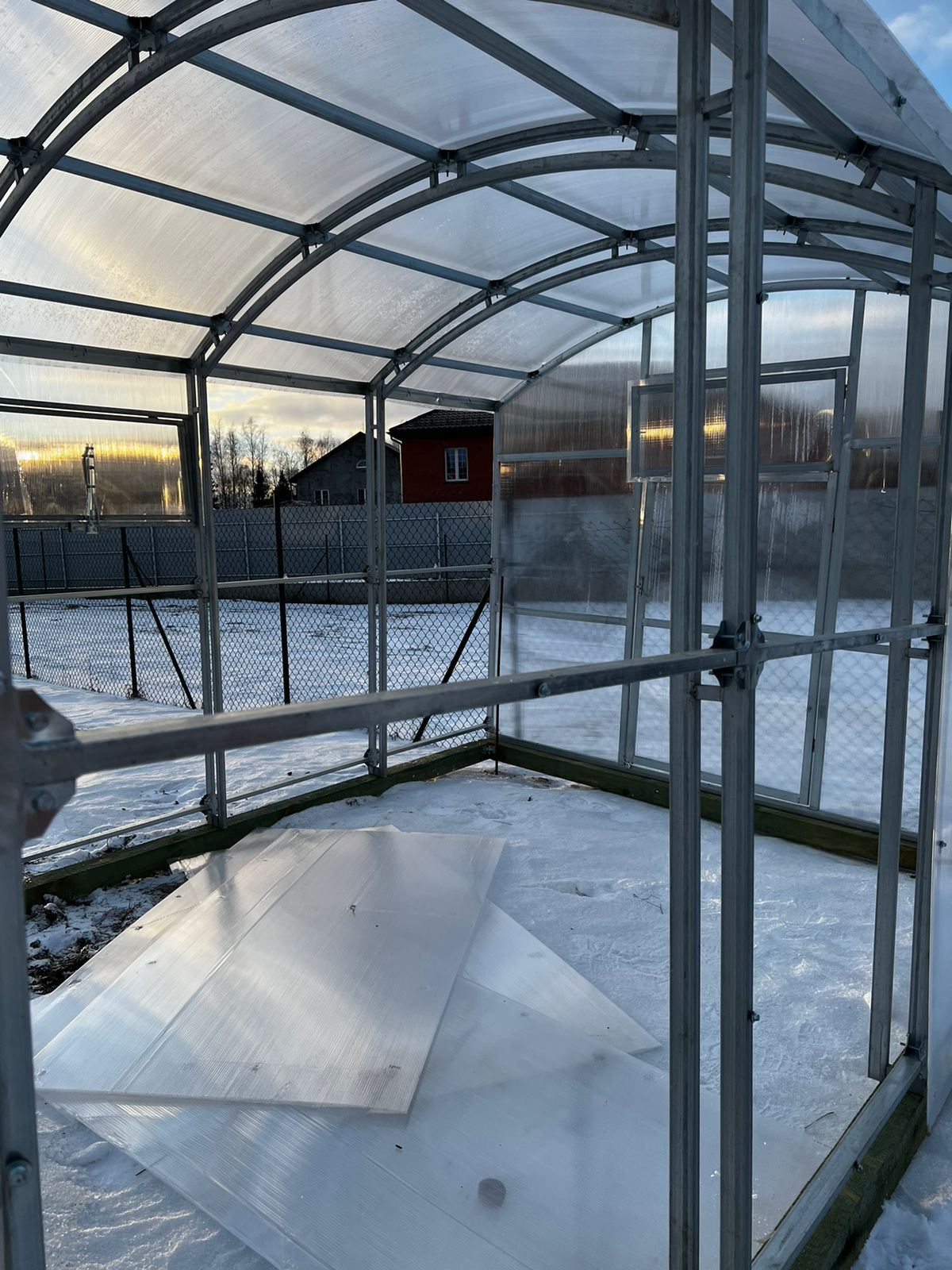 Нормальаная тепличка. Собрал сам за один выходной. Главная хитрость - ставить арки "заломами" по одной стороне, тогда все сойдется сразу. Сварено на стыках все надежно, но не грубо, не кустарно. Пластик режется тяжело, что хорошо. Правда дверные петли взял другие и ручки поудобнее, а в остальном супер.