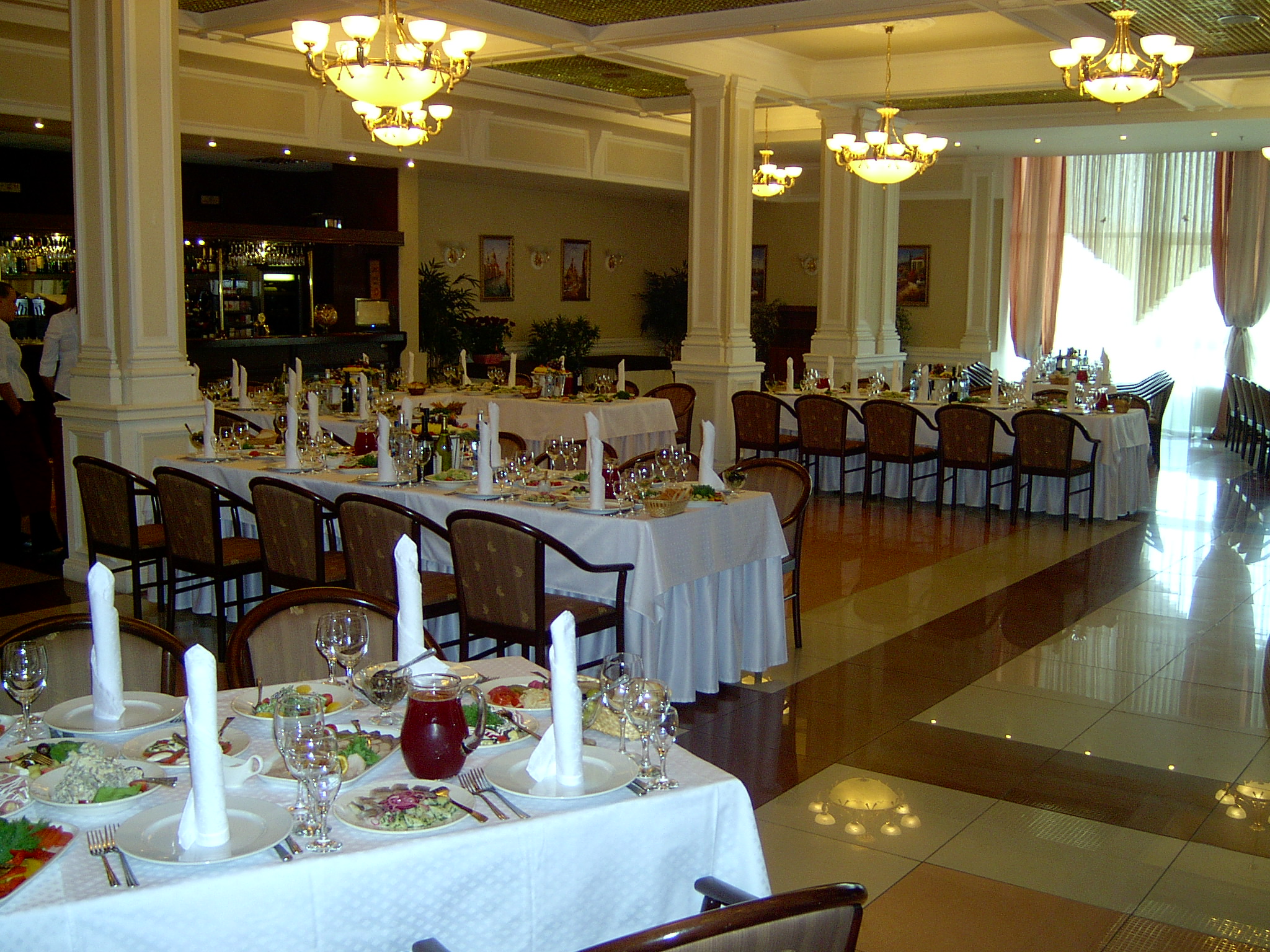 Заказывали зал для корпоративного праздника. Конечно, большая часть нашего мероприятия-это развлечения от ведущего, которого мы сами приглашали.Но...Зал красивейший, праздничный с огромными люстрами,официанты работали слаженно, хоть их было и не много, но всё делали как надо и вовремя. Всех порадовала кухня.За неё отдельное спасибо Сергею,меню нам составил отличное(хотя мы сначала другое хотели, но он нам помог сделать стол лучше).Было очень всё вкусно, на столе - разнообразие , многое забрали с собой,всё нам упаковали в ланч-боксики и в пакеты сложили .Что меня удивило, официанты сами спросили, что сложить с собой.И всё сложили аккуратненько, в перчаточках одноразовых укладывали.Оставшийся алкоголь сложили в коробки и б/а напитки тоже.Мы правда не все забрали, но было очень приятно такое отношение.Так что ушли мы все сытые и довольные.Спасибо за прекрасный вечер!