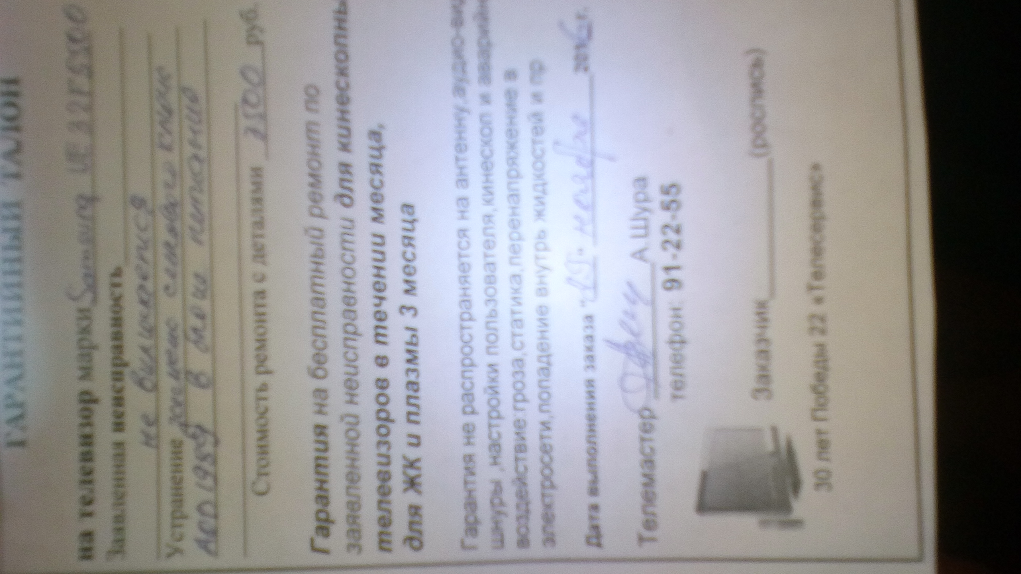 Фирма плохая!деньги дерут а толку нет.замена одного транзистора и работа мастера-3500р.через 10 дней та же самая поломка.мастер говорит проще заменить блок целиком.еще 3500.а это уже стоимость рабочего телевизора