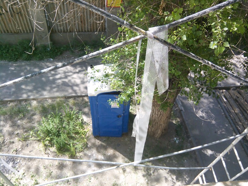 Добрый день! Сегодня 11.06.2015. По ул.. Казахской 76/1 трёхэтажный корпус делают ремонт здания. И под моим окном строители поставили био туалет в 2 метрах от окон. Туалет с дверью развёрнут в сторону окон нашего дома. Прямо напротив моей квартиры. На против окна. Я живу на 2м этаже и на против моей квартиры уже есть общественный туалет. Получается картира из одной комнаты и перед окном туалет, и на против дверей наш коммунальный туалет общего пользования. Сейчас лето стоит жара. Я обратилась в ЖЭУ 14 которому относится дом с просьбой убрать с под окон био туалет. В итоге кроме криков и возмущений с ЖЭУ ничего не дождалась по телефону. Мне ответили: куда идти рабочим в туалет? И бросили трубку. Даже не захотели решить проблему. Я пыталась ещё позвонить с сотового и с домашнего телефона но ЖЭУ не берёт рубку. Игнорирует звонки. Чуть позже я позвонила ещё раз попыталась наконецто дозвонилась, обьяснить ситуацию, но кроме криков и возмущения что куда им идти строителям. Я обьяснила пусть заходят в здание. Двери часто открыты и я тоже дома могла бы открыть, но мне потелефону сказали "ВСЁ ДОСВИДАНИЯ" А ведь ЖЭУ знает, что у нас в коммуналке по 2 общественных туалета на каждом этаже, где строители могли бы ходить при нужде. Теперь ходят дети с детской площадки ходят в биотуалет. Прохожие все кому нужно по нужде тоже ходят. На этаже у нас двери постоянно почти открыты. Вынуждена обратиться к вам. Я страдаю от аллергии, а тут ещё туалеты с двух сторон. Это просто кошмар. ЖЭУ игнорирует просьбу убрать био туалет. Теперь перед окнами у нас общественный биотуалет .