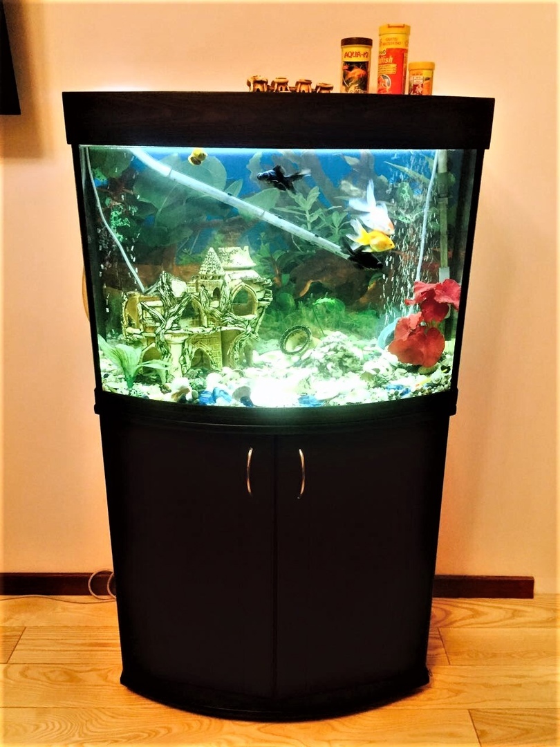 Заказала на сайте Зелаква аквариум карон с тумбой. Доставка оперативно и бесплатно. Качество высокое. Надежная тумба, не шатается под нагрузкой, весь крепеж в наличии. При обслуживании аквариума стекла не царапаются, легко отмываются, качественная склейка. Светильник хорошо светит.
