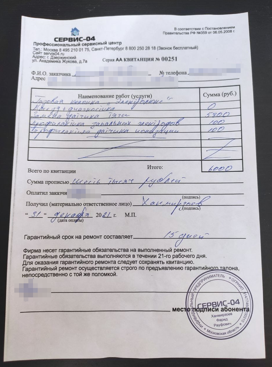 Крайне не рекомендаю пользоваться услогами данной конторы. Завышеные цены, пьяный монтажник, отвратительное качество ремонта. 30 декабря 2021 года сломался газовый водонагреватель. 31 декабря удалось заказать местера из этой компании, потому что первая в выдаче по запросу "ремонт газовых водонагревателей Electrolux". Приехавший мастер выглядел немного пьяным (заметил уже когда он начал разбирать нагреватель). К сожалению, был уже новый год, шанса заказать кого-то другуго не было, поэтому этого выгонять не стали. В процессе он кое как смог понять, что пробема в датчике тяги и заменил его. При сборке забыл установить одну из деталей, поэтому ему пришлось разбирать и собирать еще раз. В итоге стоимость ремонта была озвучена: 4500 за датчик и 1500 за работы. Понимая, что новый год и это наценка за дату, отплатили. Погуглив потом, выяснил, что датчик стоит около 250 рублей. И можно было бы смириться с такими расценками и пьяным монтажником, если бы ЧЕРЕЗ 2 МЕСЯЦА НАГРЕВАТЕЛЬ СЛОМАЛСЯ С АБСОЛЮТНО ТЕМИ ЖЕ САМЫМИ ПРОБЛЕМАМИ. При попытке позвонить и договориться о гарантийном ремонте я был послан со ссылкой на то, что гарантийный срок у них на ремонт 15 ДНЕЙ. Водонагреватель работал до ремонта 2 года, после 2 месяца. Не обращайтесь в данную контору, только потеряете деньги и нервы.