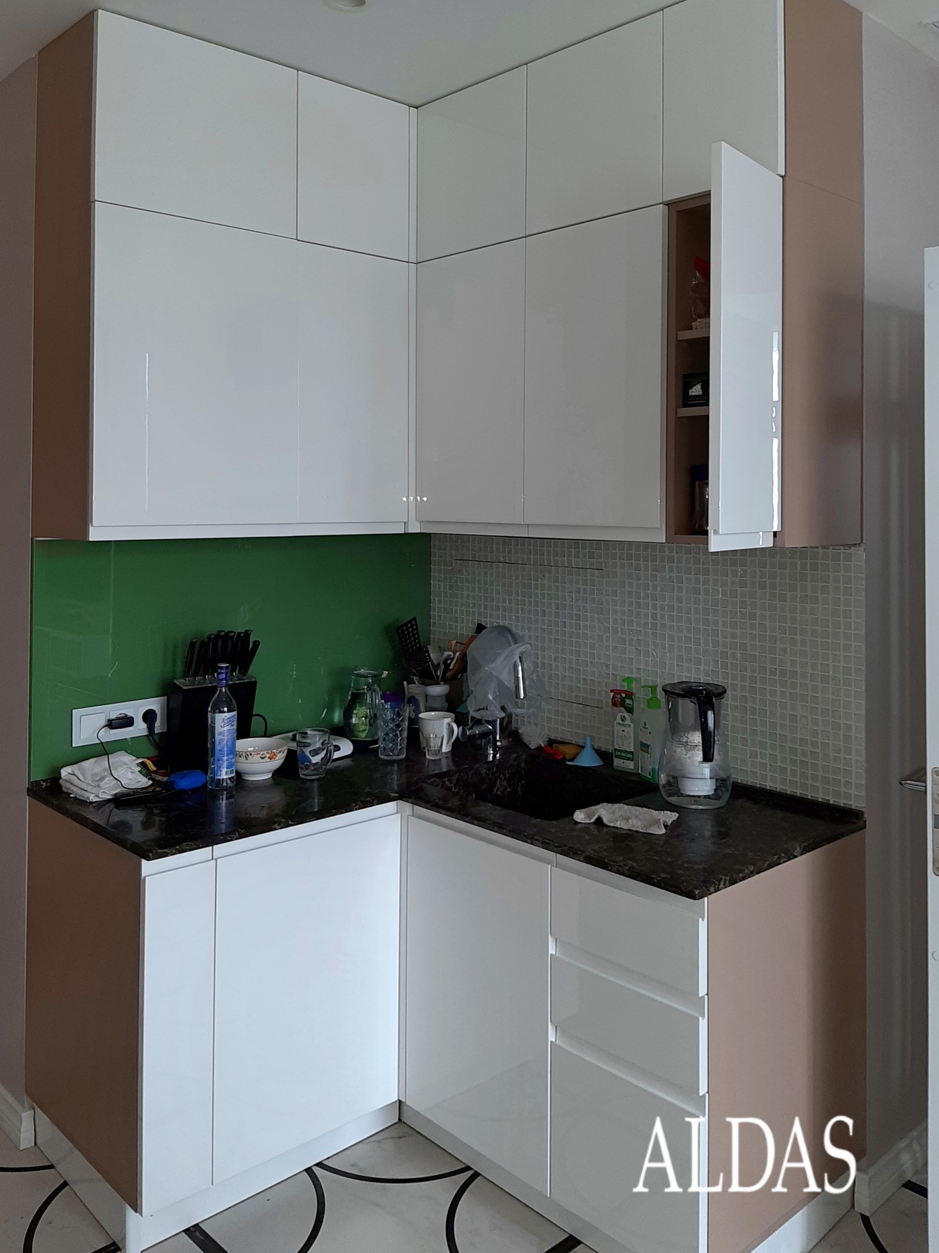 Мы на протяжении долгого времени теснились большой семьей на маленькой кухни. Пространства категорически не хватало. Многие привыкают, но я поняла надо что-то менять. Подруга повела меня в мебельный салон "Альдас", прицениться и посмотреть каталоги. Дизайнер Михаил, не стал показывать мне готовые проекты, а мы с ним сделали новый дизайн-проект, не посоветовавшись с домашними, я заказала кухню. С нетерпением ждала месяц. Моя семья была в шоке, когда приехали устанавливать кухню. Весь гарнитур располагается буквой Г, вместо обеденного стола предназначена барная стойка, что увеличивает пространство, удобная альтернатива. Все сделано компактно, но при этом все умещается. Семья в восторге!!!
