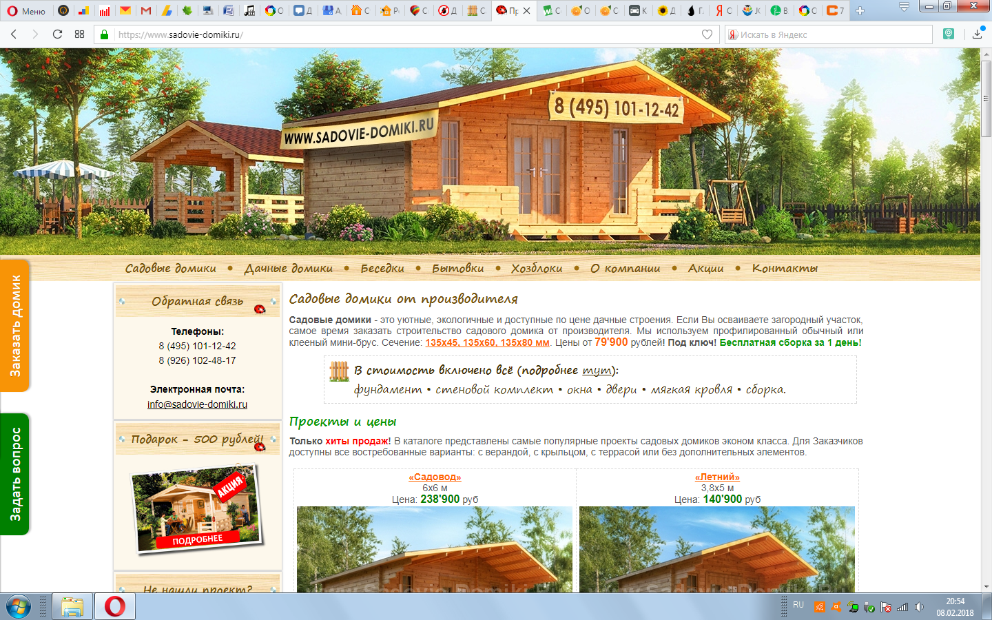 К весне 2018 срочно понадобился сайт по садовым домикам! Ну никак сейчас без этого! Обратились в Орехово Онлайн и не пожалел! Ребята просто молодцы! Все подсказали, посоветовали, выслушали. В результате мы получили супер красивый и самое главное эксклюзивный сайт. Нигде больше такого не встретите. Можете сами его посмотреть: https://www.sadovie-domiki.ru/. Вместо тысячи слов! Мы очень довольны! Спасибо вам! Владимир