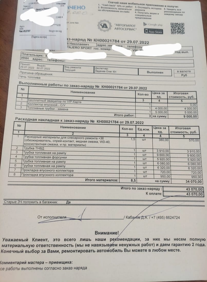 Течь топлива (((. Понятно что с такими поломками ехать невозможно...Когда паникуешь, то тяжело соображать с чего начать. начал , с эвакуатора, зачем рисковать! Вспомнил, что где то была карточка с вызовом эвакуатора, нашел. Кстати сам не любитель хранить всякие карты акционные, но здесь гордо звучало VIP ) и в данный момент она была как никогда кстати Ну не буду отходить от темы, а просто хочу поделиться приятным впечатлением от посещения автосервиса, который открыл для себя неожиданно. Я остался очень доволен плюсами : - эвакуировали по акции - грамотно и оперативно провели диагностику - не развели на замену, а просто сделали ремонт впускного коллектора - все вопросы решаемы в режиме начального диалога, а не потом ( я имею ввиду замены и запчасти) Коллектив в целом очень приветливый и грамотный. Цены на запчасти конечно не ниже рынка, но вполне приемлемые, для тех, кто экономит время. Чтобы отзыв выглядел полноценным, добавлю, что подъезд удобный. Из есть комната отдыха с массажным креслом, так что не долгий ремонт вполне можно переждать