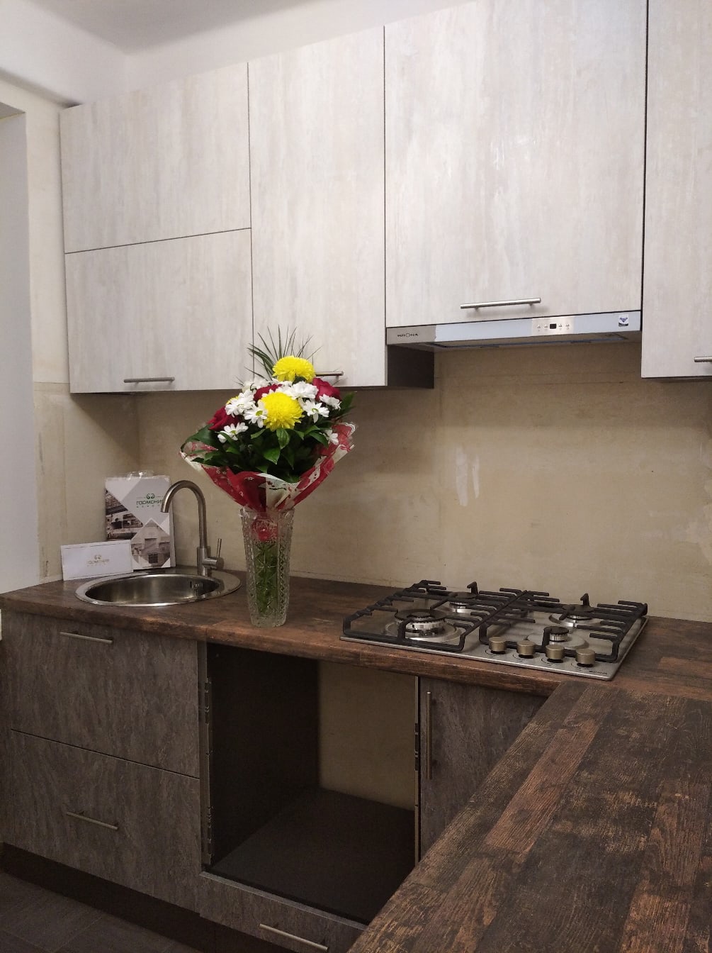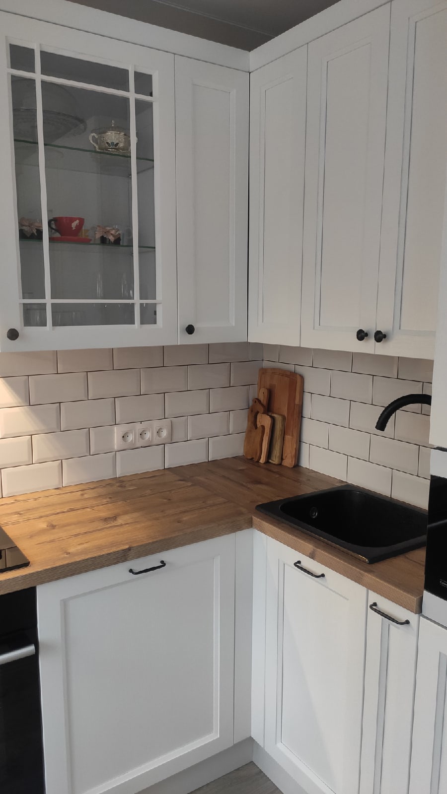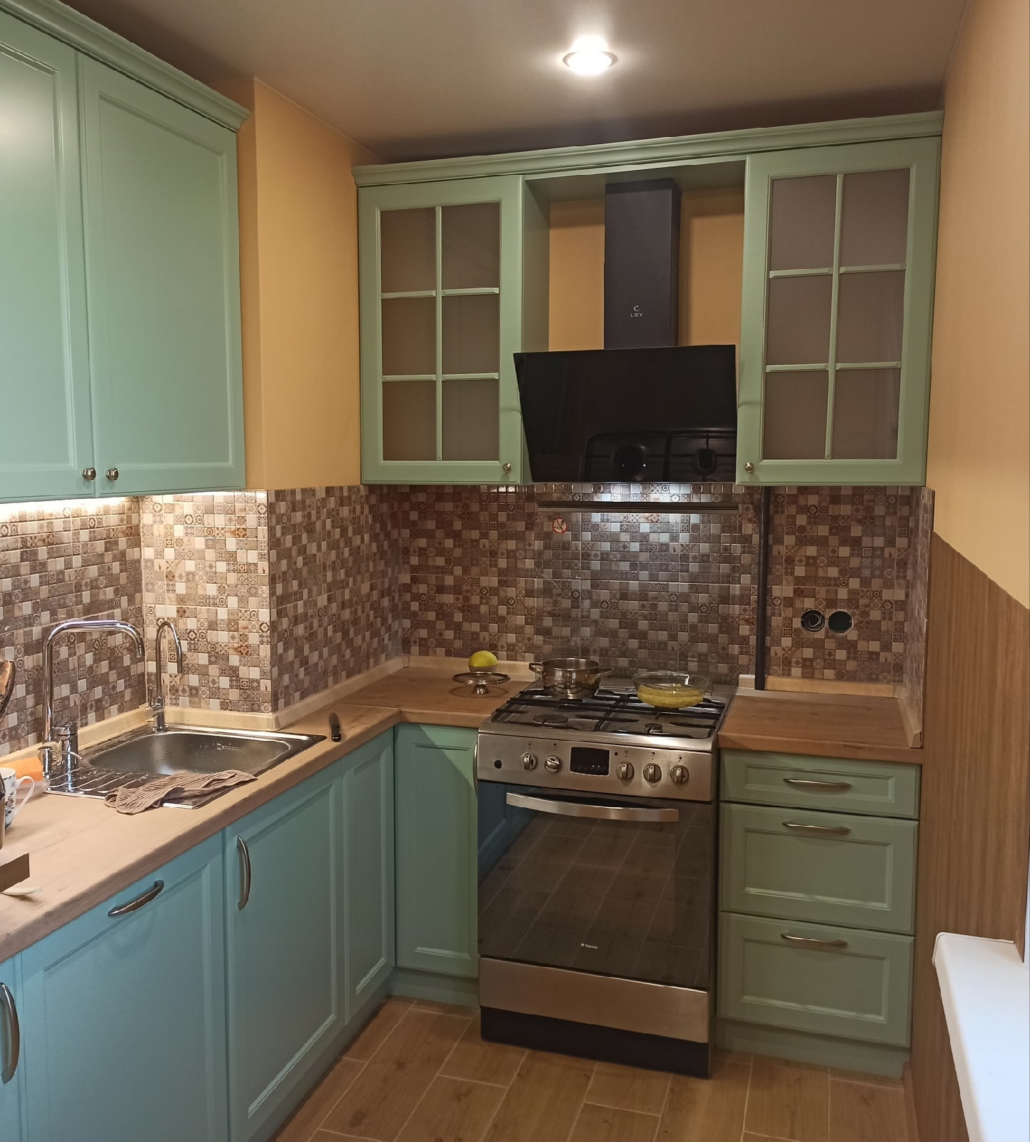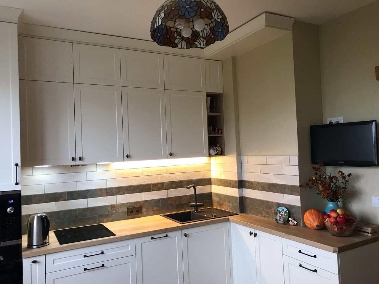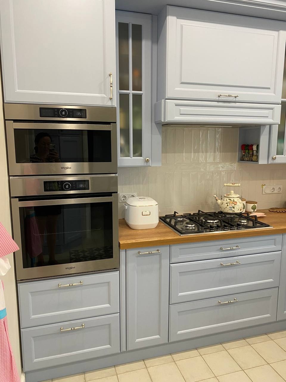Добрый день. Хочется поделиться своей кухней и выразить благодарность коллективу "Гармонии" на Бухарестской 33-1. Кухня получилась чудесная, очень красивая, такая, какой я и хотела её видеть (фасады из серии Луидор, мдф, матовая краска). Кухня была изготовлена и доставлена в срок. Сборщики собрали быстро и аккуратно. Очень порадовало качество, всё выполнено добротно, на совесть. Очень нравится столешница - как настоящее состаренное дерево, фактурная на ощупь. Надеюсь, и даже уверена, кухня послужит долго.