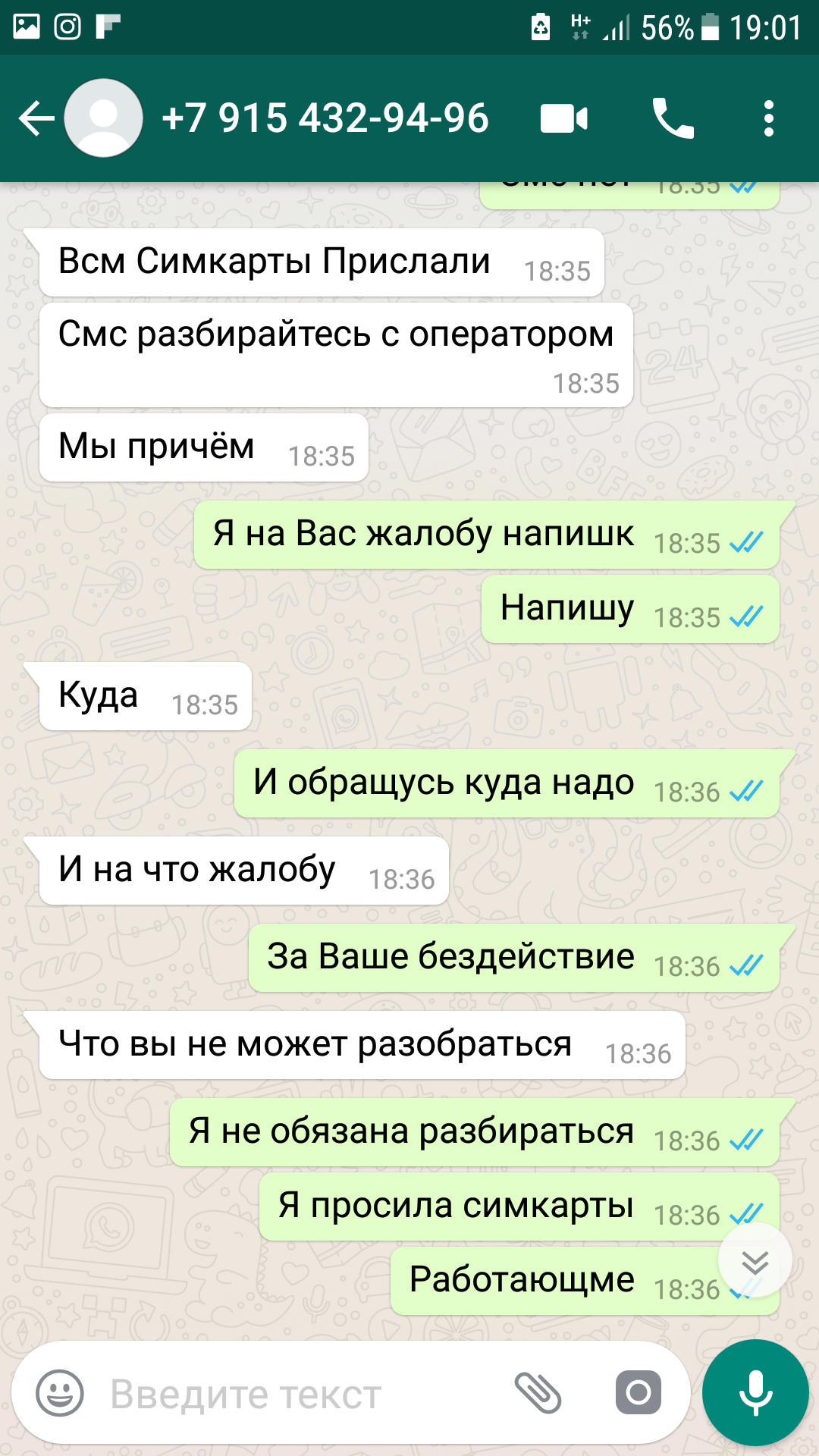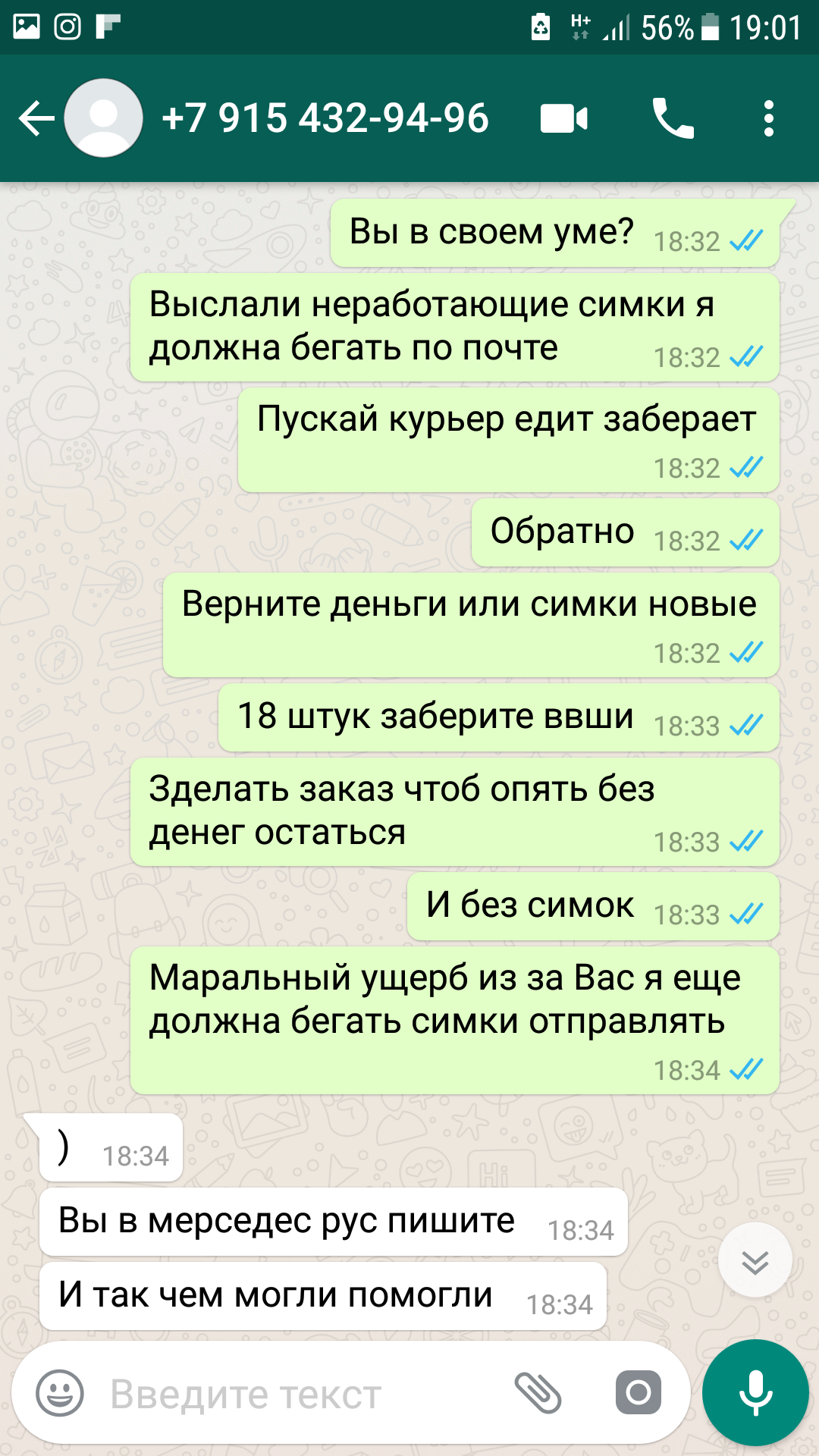 Это просто ужас!!! Выслали симкарты, которые не отправляют смс!! Хотя я просила именно смс!! Просто дерут деньги!!!, моего друга так же обманули, не предупредили что симкарты не подходят для соц сетей и потом сказали снова платить за обмен!!!