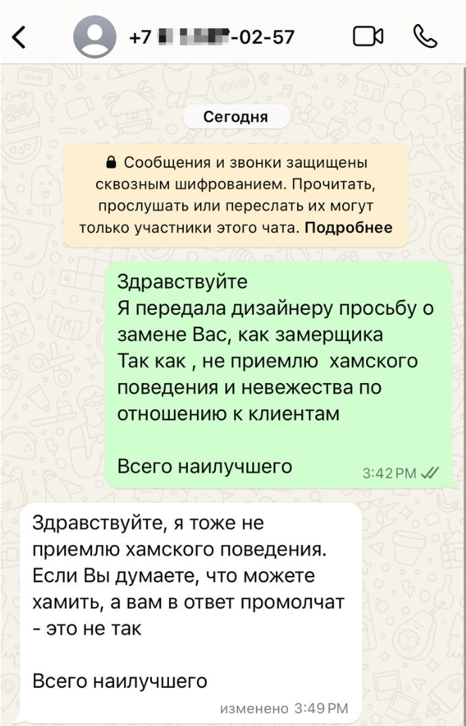 Плюсы: дизайнер Дарья помогла подобрать материалы и сделала проект по нашему запросу, грамотно проконсультировала по выбору материалов, был очень приветлива и вежлива. За это 1 балл, иначе 0. Минусы: Для записи на замер Дарья скинула интервалы, я выбрала конкретное время в этом интервале. Сообщений о том, что можно выбрать интервал , а не конкретное время не было. Я запланировала следующий день с учетом этого, с учетом того,что все равно придется отпрашиваться с работы, т.к. замер может быть не позже 18.00. Мне сообщили ,что со мной свяжется замерщик. Замерщик связался в 15.07 и сообщил, не представившись по имени, что на замер приедет к 16.00 Я возразила, что замер на другое время и попросила приехать именно в него и что вопрос разногласий по времени замеру нужно решать внутри компании,а не с клиентом Далее он ответил, что не намерен меня ждать. На мои просьбы сменить тон и сообщить приедет ли он в назначенное время, отреагировал неадекватно, сообщив, что он разговаривает также, как разговаривают с ним и бросил трубку. Создается впечатление, что клиент должен что-то ,а не наоборот. Я позвонила дизайнеру, и попросила решить вопрос , в итоге договорились, что нужно заменить замерщика, чтобы не портить впечатление о компании. Как оказалось, у замерщика есть имя - Илья и он якобы расстроен после очередного утреннего собрания в компании. И что, она удивлена, что он не позвонил вчера (оказывается, задатки на сервис есть, но они не работают). Звучит нелепо. После этого я решила сообщить это несостоявшемуся замерщику и в ответ, вместо извинений, получила очередное хамство. Планировали сделать два проекта, общей стоимостью 800 т.р., но уже не здесь. Думаю, что к лучшему. Вряд ли такой человек, не понимающий ,что общается с клиентом, с таким гонором, способен качественно выполнить работу. Ведь он даже не способен управлять своими эмоциями и вести разговор в деловом, клиентоориентированном стиле. Вероятно, этой компании не нужны клиенты, раз руководство не вкладывается в отбор сотрудников, их обучении манерам поведения с клиентами и в поддержке репутации компании. Или идет расчет на масс-сегмент, где не делается ставка на клиентоориентированность. Категорически не рекомендую данную компанию, если хотите получить достойный уровень сервиса, а не невежественное общение.