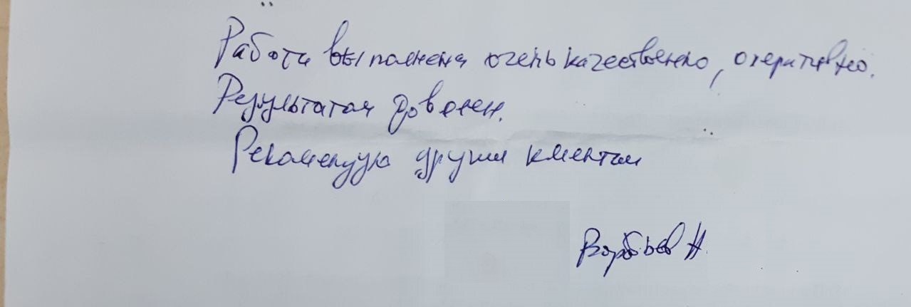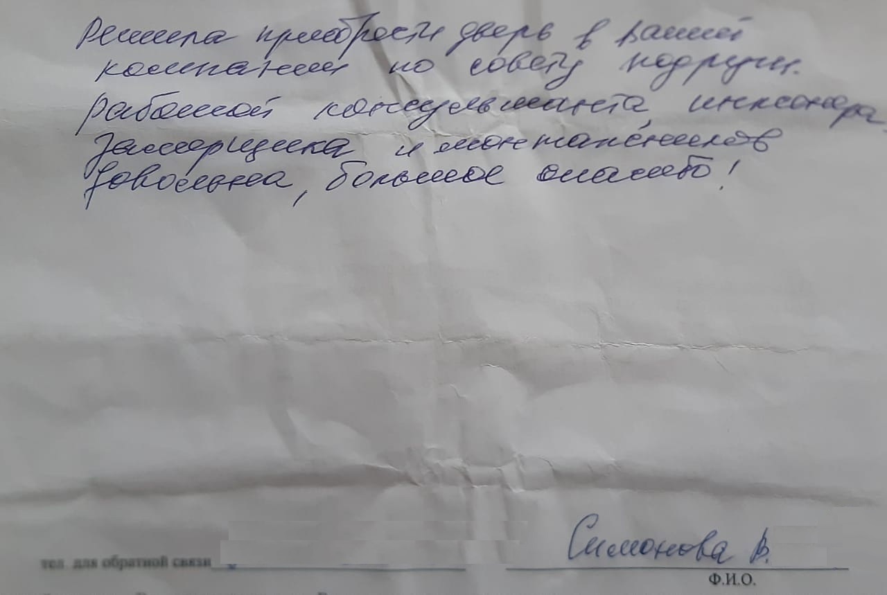 Решила приобрести дверь в вашей компании по совету подруги. Работой консультанта, инженера, замерщика и монтажников довольная, большое спасибо! Отзыв размещён компанией «Гардиан», написан Симоновой В., оригинал находится в центральном офисе по адресу г. Москва, Каширское шоссе, д. 3, корп. 2, стр. 6.