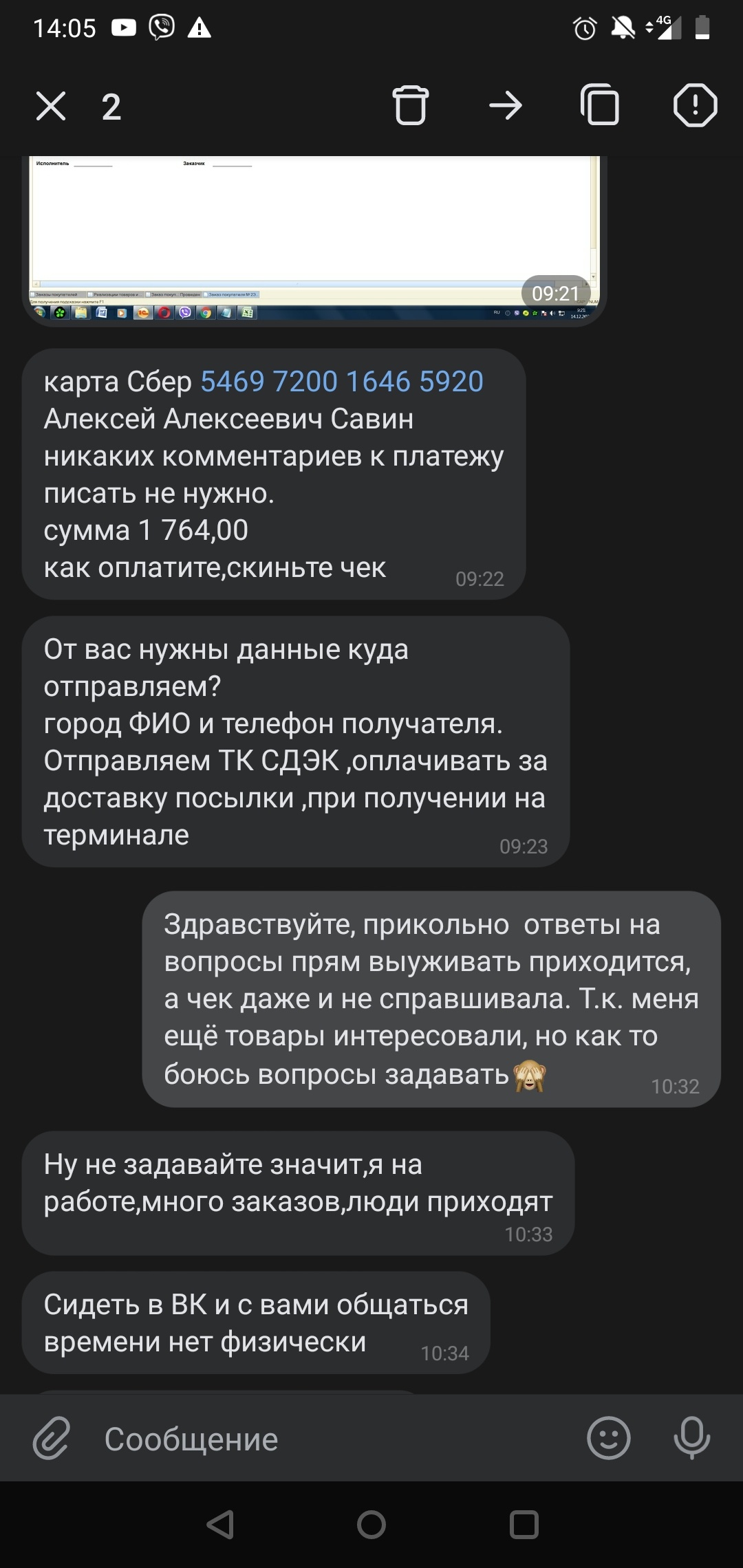 @татьяна, вместо извинений клевета. Если в такой мелочи вы себя так "достойно" ведете, то как же будете при предъявлении некачественного товара?На следующее утро я уже ехала за товаром в другой магазин, что свет клином что-ли на вашем магазине сошёлся) Смотрите не утрудитесь и не забудьте свою личную страницу в ВК от группы открепить, чтоб вам больше никто не писал, а то через товары напрямую к вам сообщения летят)