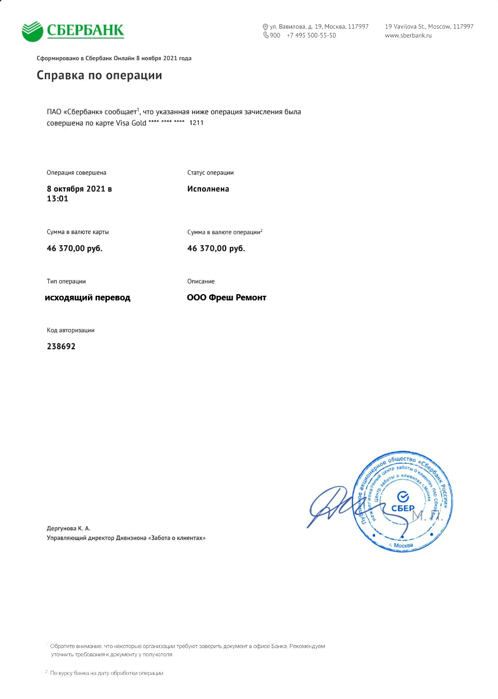 Понравилось, что в Фреш Ремонт есть мастера всех ремонтно-строительных профессий. Работы требовались по сантехнике и электрике в офисе на Нагатинской. Материалы в смете. Закончили в договорные сроки. Ни разу не видела кого-нибудь из ремонтников «навеселе». Серьёзных промахов не наблюдалось, а по мелочи тут-же с прорабом решали. Все документы на произведенные расходы выдали. Все в целом понравилось.