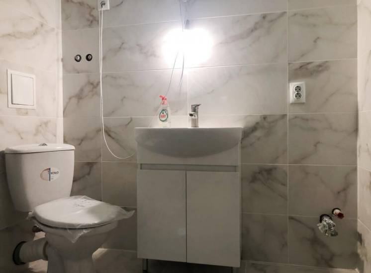Заказывали некоторые ремонтные работы в двух комнатах. Осталась довольна своим выбором. В туалете нужно было положить плитку, установить унитаз, покрасить потолок и еще были работы в спальне, там нам сделали полы, поклеили обои, покрасили, сделали натяжные потолки и установили плинтуса. Работы сделали хорошо, качественно.