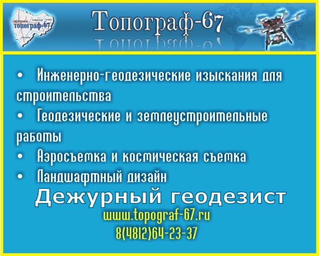 В компании "Топограф-67" работают профессионалы высокого класса. Идеальное соотношение цена-качество!