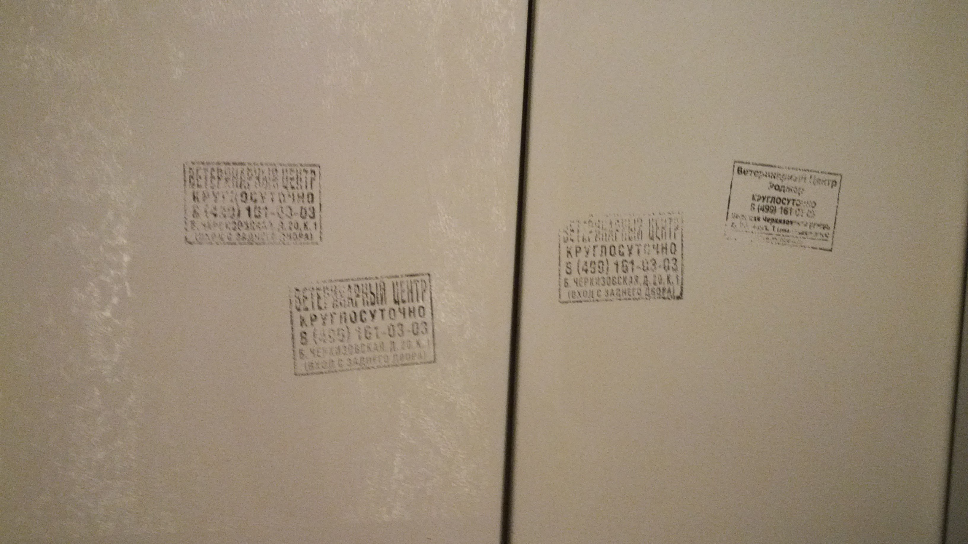 Этой осенью в лифте нашего подъезда появилась рекламная листовка центра "Роджер" на Б.Черкизовской. Видимо, эту рекламную акцию начали к открытию новой клиники. Листовку прилепили на несмываемый клей. Скоро она превратилась в лохмотья, которые с большим трудом смыли только через две недели, неопрятные следы на стене лифта остались до сих пор. А еще через неделю на этом месте появилась такая же листовка. Одновременно с ней в лифте и подъезде начали появляться уродливые черные штампы с рекламой "Роджера", один рядом с другим, еще и еще. Сейчас их уже семь штук только внутри одного лифта, в т.ч. - на зеркале. И штампы эти - трех разновидностей. А еще - на дверях лифта снаружи, на каждом этаже, на дверях подъезда. И мастику этих штампов практически нельзя стереть. Понятно, что изуродован не только наш подъезд, а очень многие подъезды района Преображенское. И, видимо, других районов. Порча лифтов, подъездов и прочего имущества называется "вандализм" и является административным правонарушением. Понятно, что эту рекламу наносят не врачи клиники "Роджер", и не врачи ее заказывают. Понятно также, что хозяева клиники, которые заказывают такую первобытную, варварскую рекламу, по определению не могут быть умными, добрыми и честными людьми, которые искренне любят животных, хотят и умеют правильно поставить непростое ветеринарное дело, нанять хороших врачей, вежливых администраторов, платить им достойную зарплату, купить хорошие медикаменты, поддерживая при этом разумные цены на услуги. Рекламодатели, опустившиеся до вандализме, повторяем, по определению не могут быть такими. Поэтому мы с женой никогда не поведем в "Роджер" своих кота и лабрадора, и другим хозяевам не советуем водить туда своих питомцев. А хозяевам "Роджера" советуем исправить свой рекламный лозунг: "С любовью к вашим ДЕНЬГАМ, ослепленные жаждой наживы, мы пачкаем стены ваших подъездов своей дикой рекламой". И ждать, когда терпение жильцов этих подъездов лопнет, и они нанесут этот лозунг несмываемой краской на вывески, окна и двери "Рождера". На все вывески, окна и двери. Всех трех клиник.