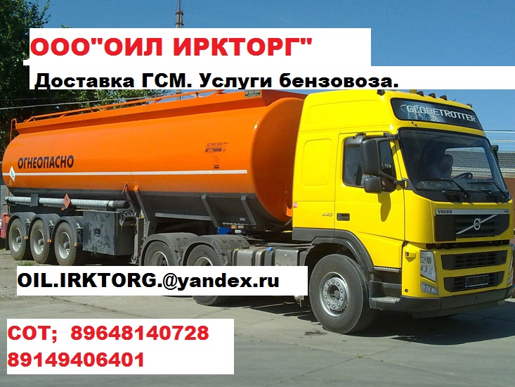 ООО"ОИЛ ИРКТОРГ" Предлагаем сотрудничество . Оптовая продажа ГСМ .Доставка бесплатная. Оплата нал. и без\нал Все вопросы по тел. 89648140728 --89027681068