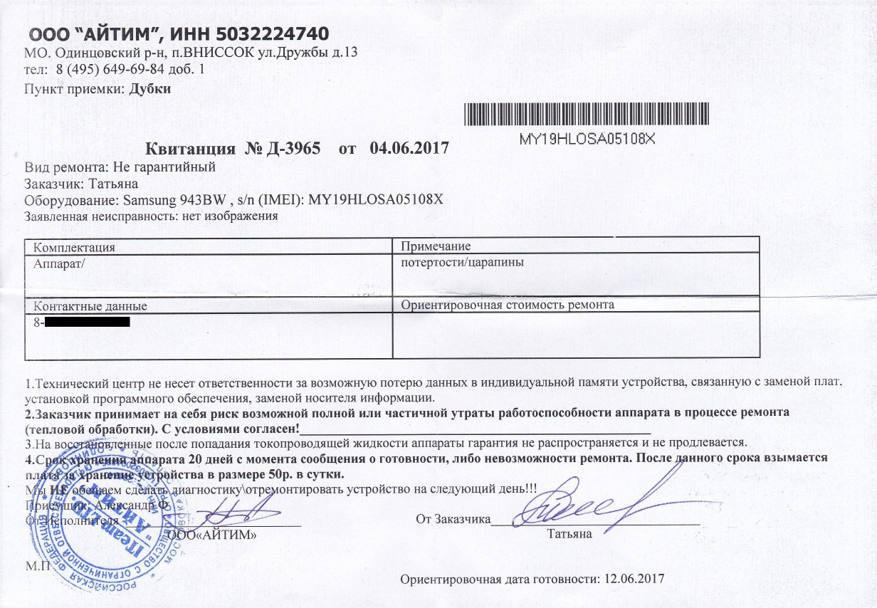 Обратился в данный СЦ с неработающим монитором. Ни через два дня, ни через четыре никто из СЦ не позвонил и не озвучил стоимость ремонта. На 10-й день позвонил сам. Цены в данном СЦ кусаются. За замену взбухших конденсаторов на плате питания запросили 2800 рублей. Это при том, что сама плата стоит раза в три дешевле. Естественно я отказался от ремонта. Когда забирал монитор, то обнаружил щель между матрицей монитора и нижней части рамки корпуса. Вскрыв дома монитор обнаружил, что там где щель отломаны фиксирующие замки. К тому же вернули мне монитор сильно запыленным. На вопрос к приемщику почему монитор весь в пыли он ответил, что у них там очень пыльно. При вскрытии монитора так же обнаружил, что железные экраны, защищающие коннекторы отсутствуют, их мастер либо забыл, либо поленился установить обратно на место. В данном СЦ к имуществу клиентов относятся небрежно. Не рекомендую пользоваться их услугами.
