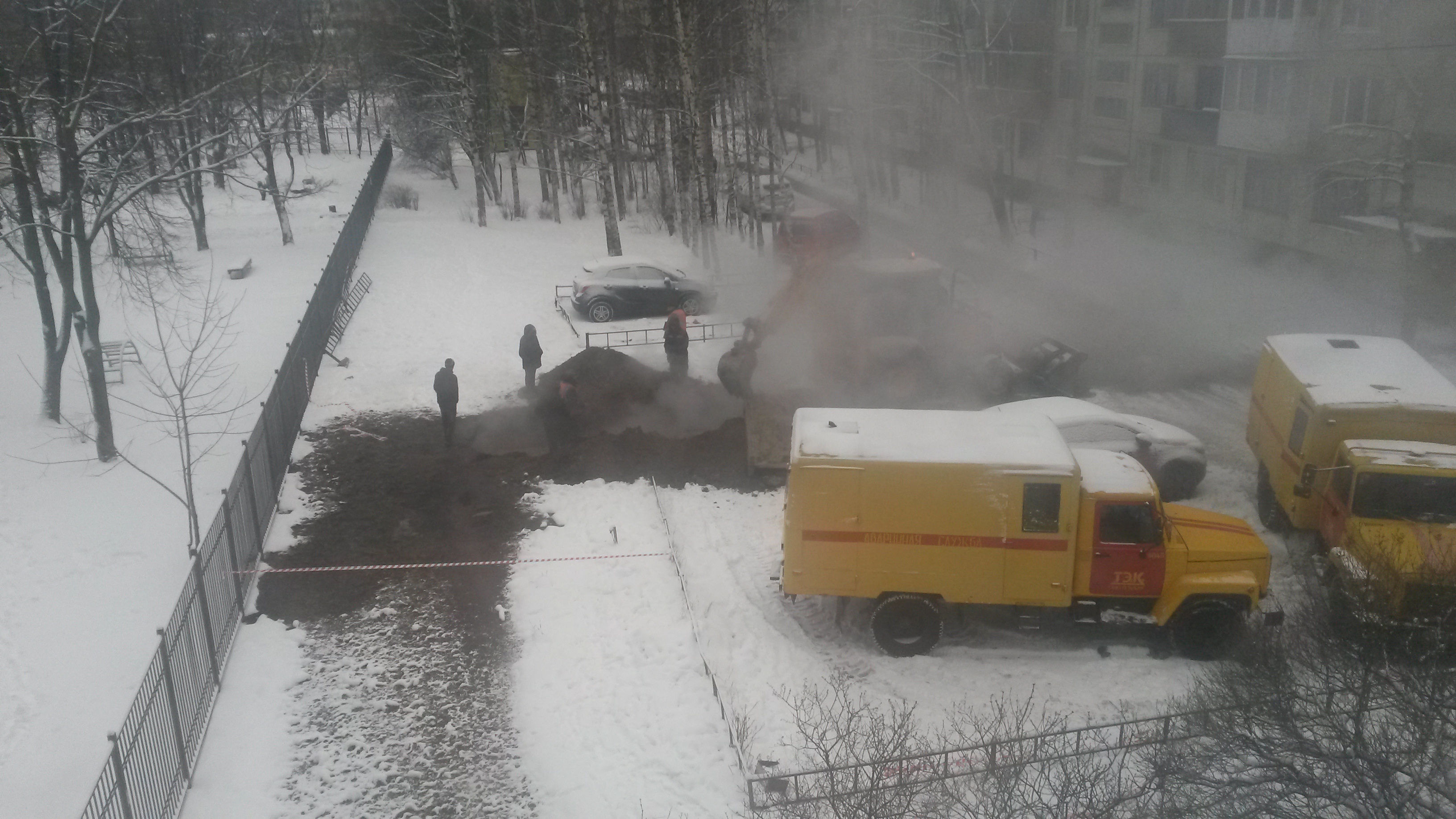 Уважаемая администрация! Много лет назад благодаря вашим и нашим усилиям между домами 105 кор. 2 и 105 кор.3 по Гражданскому проспекту была сделана стоянка для автомашин, за что все автомобилисты очень вам благодарны. 12 января 2015 года в этом месте прорвало трубу. Прорыв отремонтировали (см. фото), земелькой прикопали и все разъехались. Сейчас наступила оттепель, и машины начали стали проваливаться. У нас огромная просьба, нельзя ли этот участок засыпать хотя бы гравием (при строительстве засыпался гравий, крошка и все утрамбовывалось катком). Если вы не можете нам помочь и вам не нужны наши голоса, подскажите к кому обратиться? Или сразу рубить на губернатора! PS. С другой стороны дома 105 кор.2 при ремонте трубы вскрывался асфальт. После ремонта все было засыпано и позже заасфальтировано. ЗАРАНЕЕ БЛАГОДАРНЫ! ВАШИ ИЗБИРАТЕЛИ.