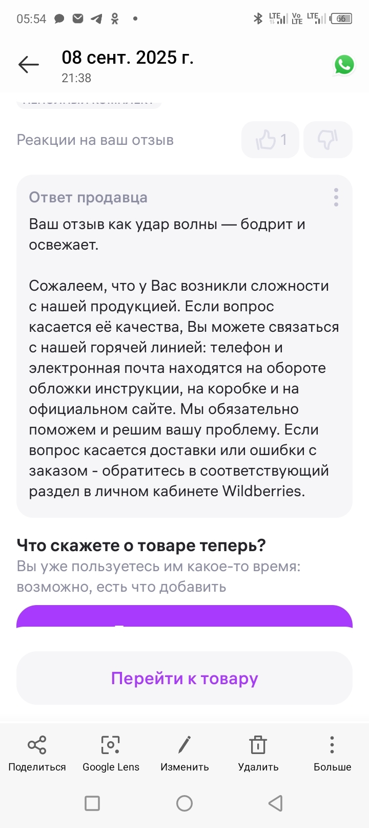 Доброго дня. Нужно связать со специалистом по вопросу возврата товара. Номер телефона +375295453652 (WhatsApp)